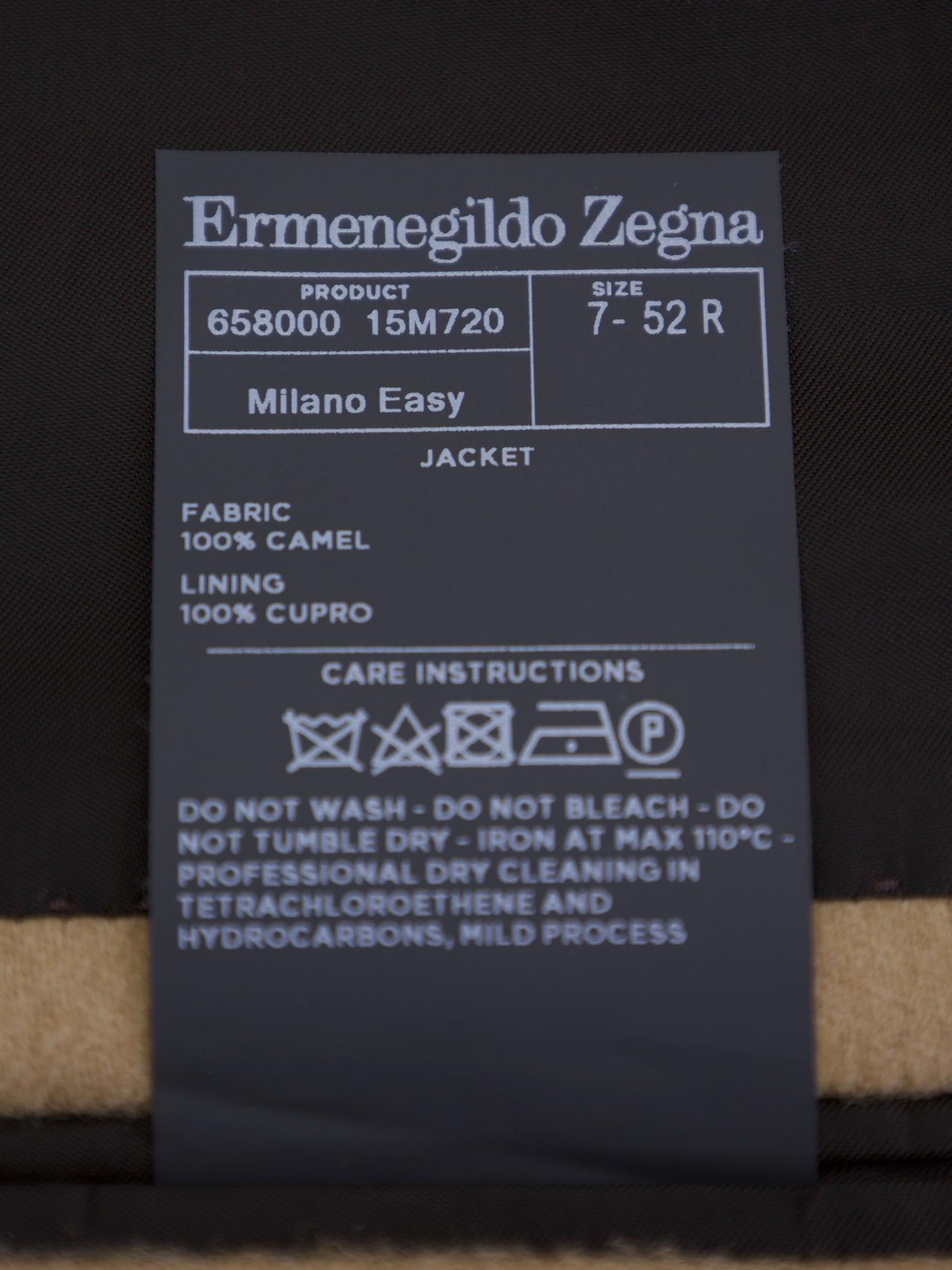 Ermenegildo Zegna's commitment to superior craftsmanship is evident in every detail of this jacket. The use of pure camel hair not only imparts a soft hand feel but also enhances durability and insulation. The 'Milano Easy' construction reflects the brand's dedication to combining traditional tailoring with modern comfort, offering a relaxed yet polished look. Hand-finished elements, such as meticulously sewn buttonholes and precisely aligned seams, showcase Zegna's artisanal expertise. This jacket embodies the brand's philosophy of timeless style and quality, making it a valuable addition to the discerning gentleman's wardrobe.