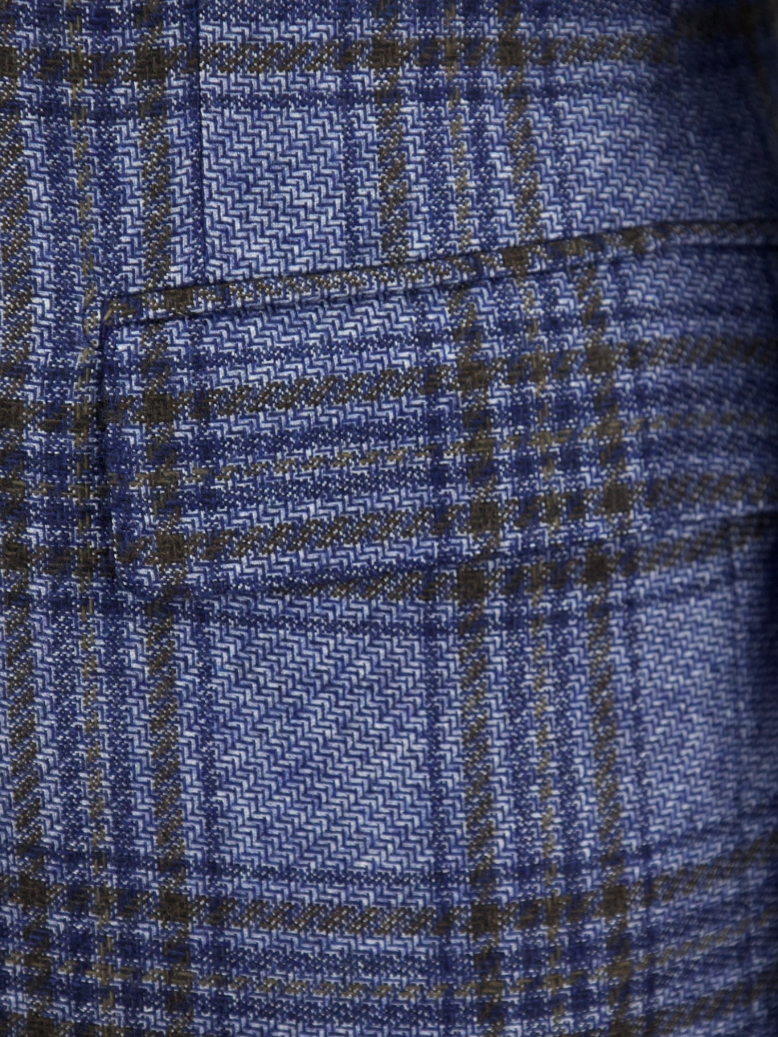 Discover the Ermenegildo Zegna steel blue glen check jacket, a refined expression of modern elegance and luxurious fabric. Crafted from a premium blend of silk and cashmere, the jacket offers an ultra-soft feel with a smooth, lightweight drape. The steel blue base is subtly textured, with a tonal glen check pattern adding depth and sophistication without overpowering. Designed with notch lapels, flap pockets, and a perfectly balanced silhouette, this piece transitions effortlessly from business to smart casual settings.