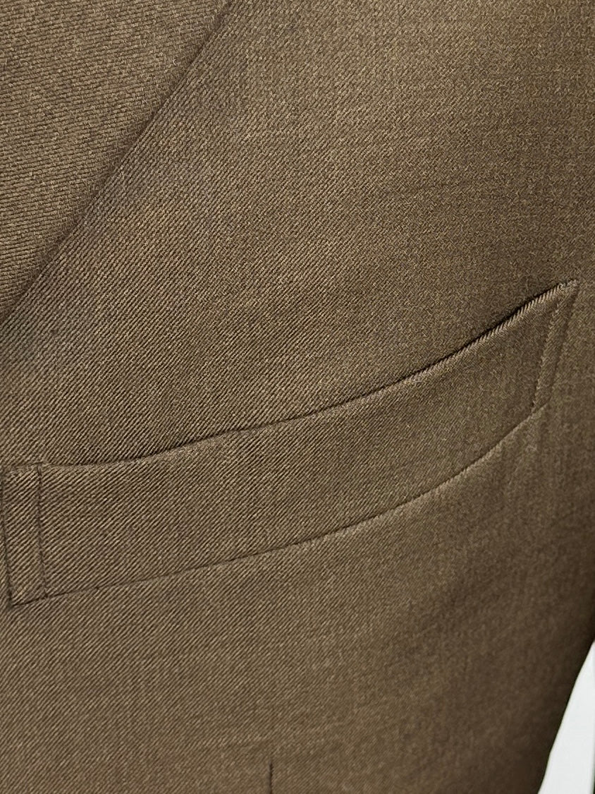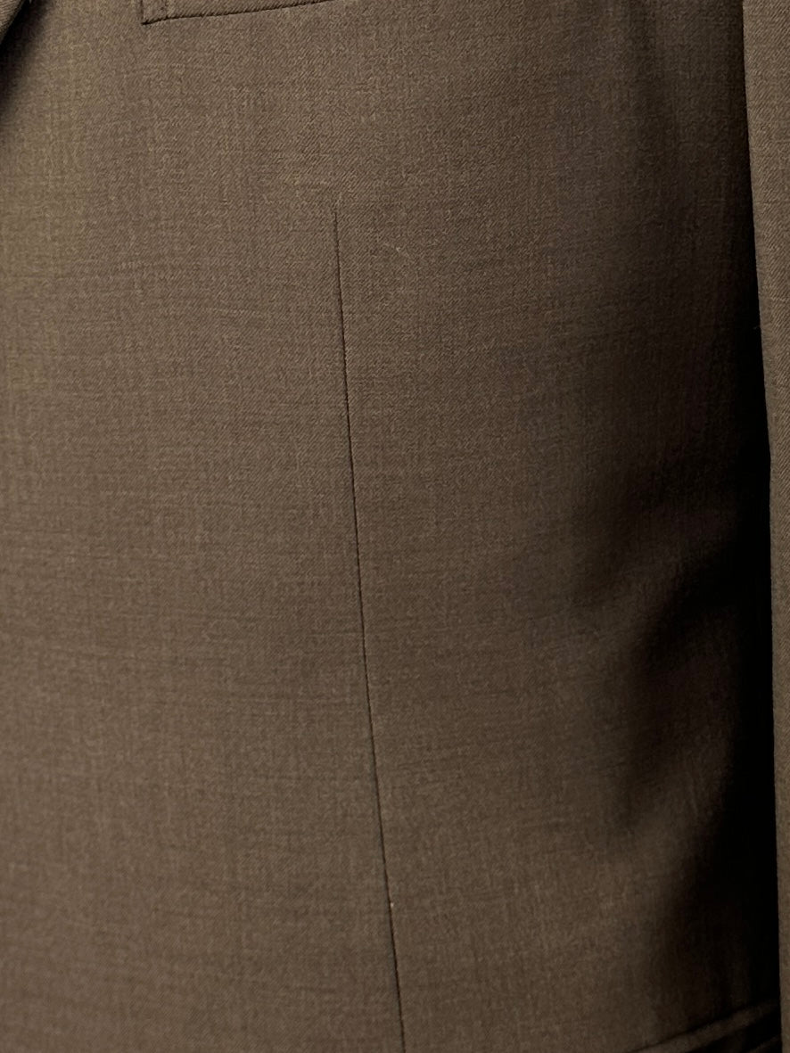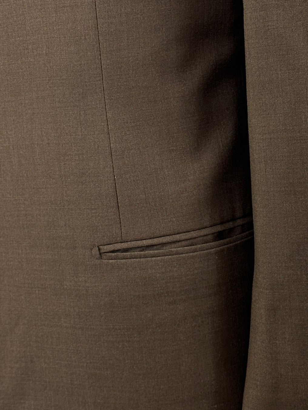 Chocoladebruin jasje, gesneden uit een exclusieve Loro Piana Tasmanian Super 120's Wool met ingesneden revers, klepzakken, dubbele zijsplitten, hoornen knopen en versierd met de typische Isaia rode koraalpin in het knoopsgat. Per Al Bazar Milano - een gerenommeerde herenkledingboetiek in Milaan, Italië. Het werd in 1974 opgericht door de broers Lino en Carlo Ieluzzi en is sindsdien een iconische bestemming geworden voor kleermakersliefhebbers. Lionel Luzzi heeft met zijn aangeboren gevoel voor stijl en onberispelijke smaak een selectie kleding en accessoires samengesteld die een perfecte mix van elegantie en hedendaagse herenkleding belichaamt. Zijn winkel staat bekend om zijn kenmerkende Italiaanse flair, met een breed scala aan kleermakers.