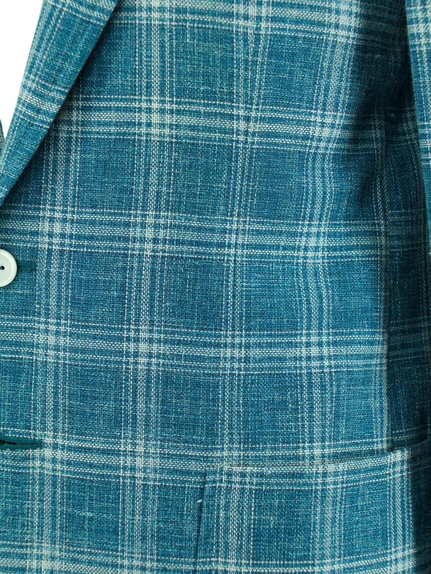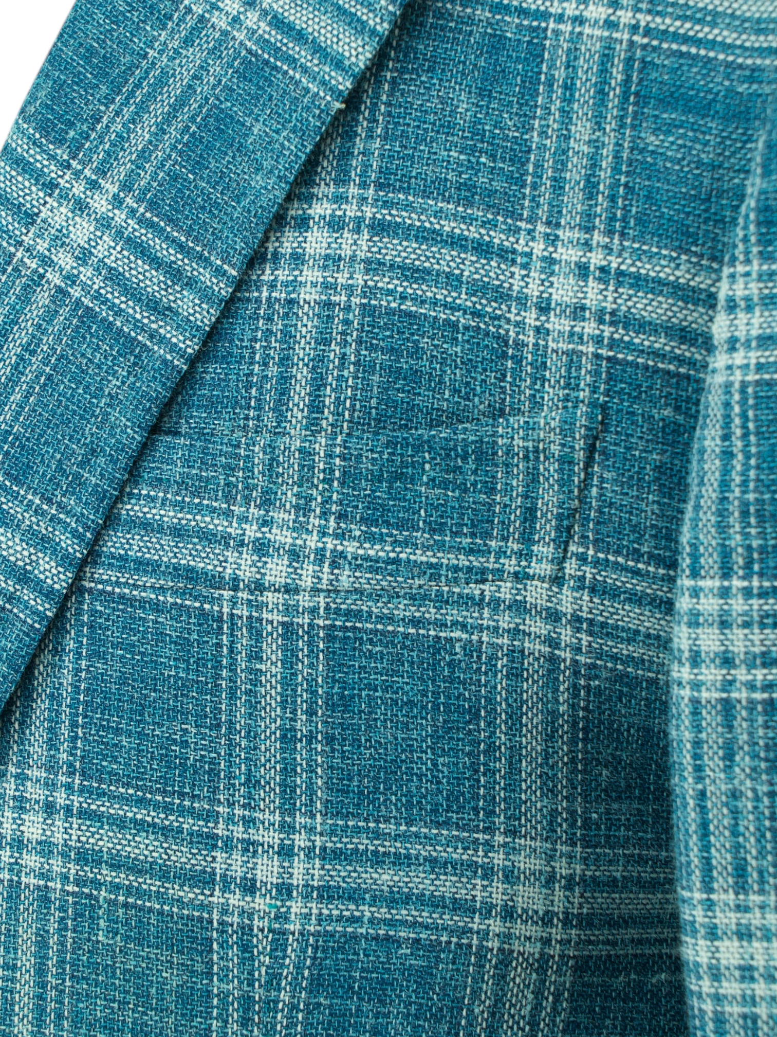Isaia Turquoise Wool, Silk & Linen "Summer Hopsack" Windowpane Jacket