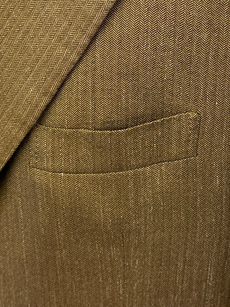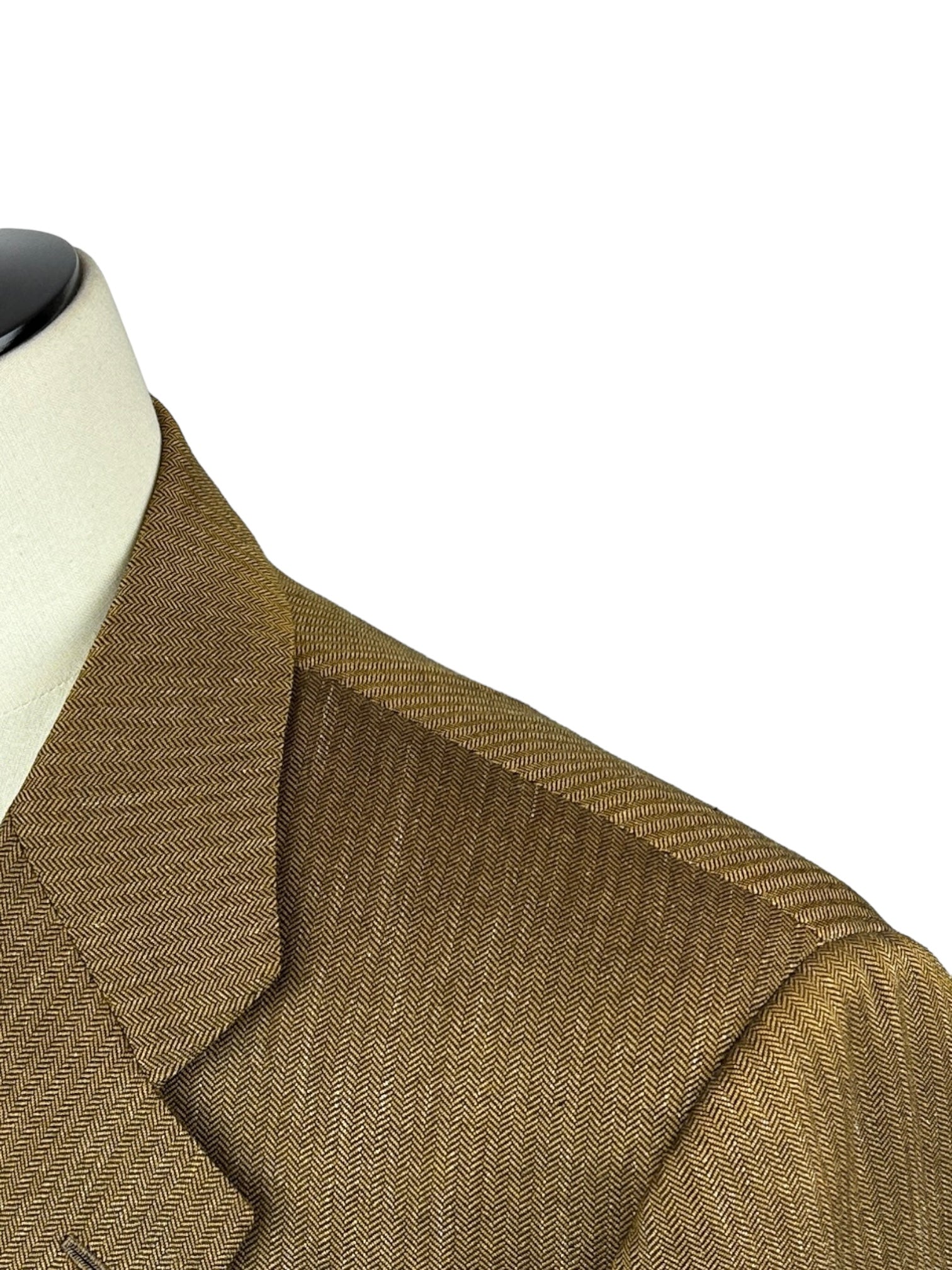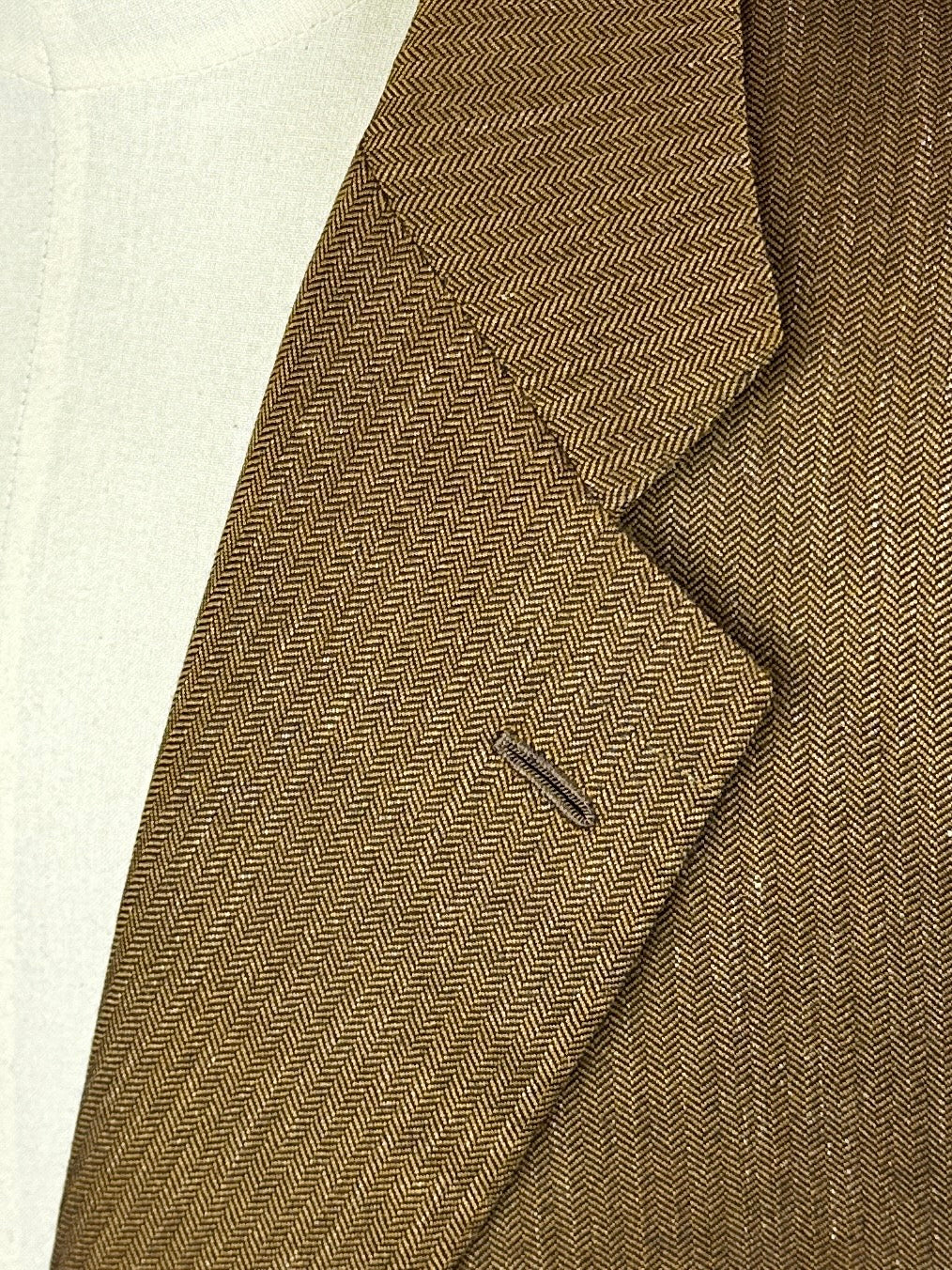 Maak kennis met het Kiton Bronze Cashmere & Linen Herringbone Jacket, een ware belichaming van luxe. Dit voortreffelijke jasje combineert de klassieke elegantie van een visgraatpatroon met de weelderige mix van kasjmier en linnen in een rijke bronstint. Het is tot in de perfectie handgemaakt door de bekwame ambachtslieden van Kiton en belichaamt uitmuntendheid en verfijning op het gebied van kleermakerswerk. Verhoog uw stijl met dit opmerkelijke stuk, waar tijdloos design en ongeëvenaard comfort en weelde samenkomen.