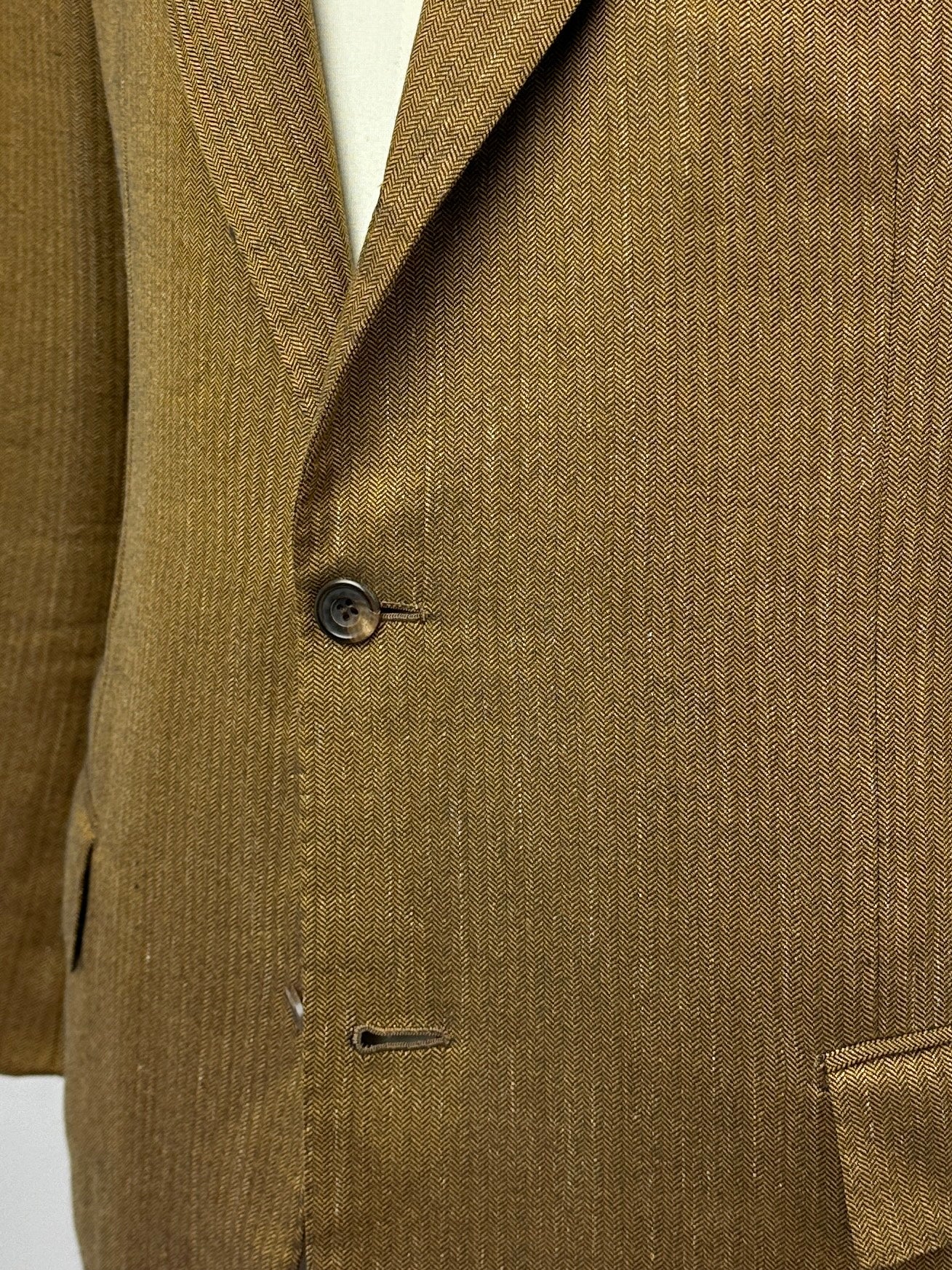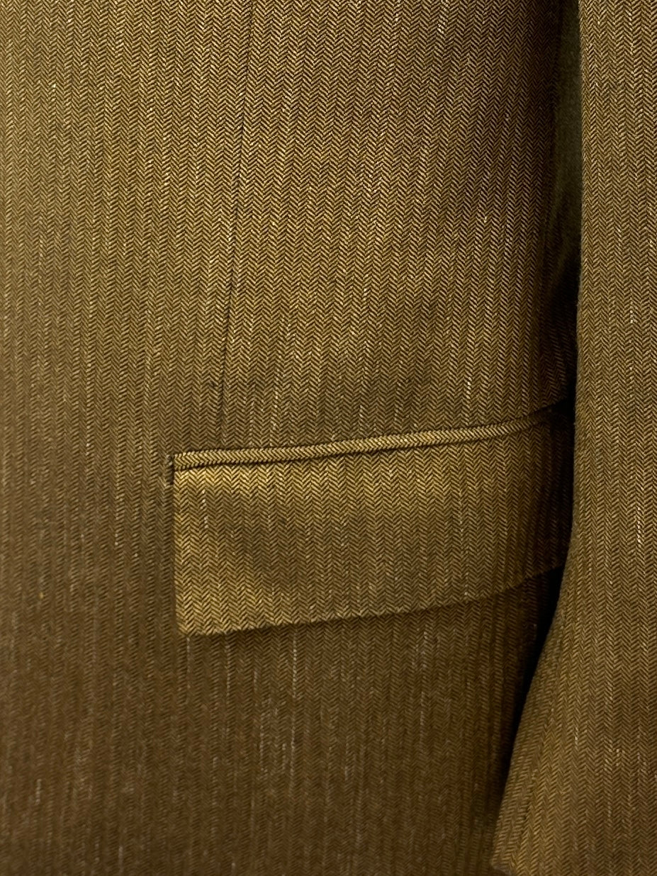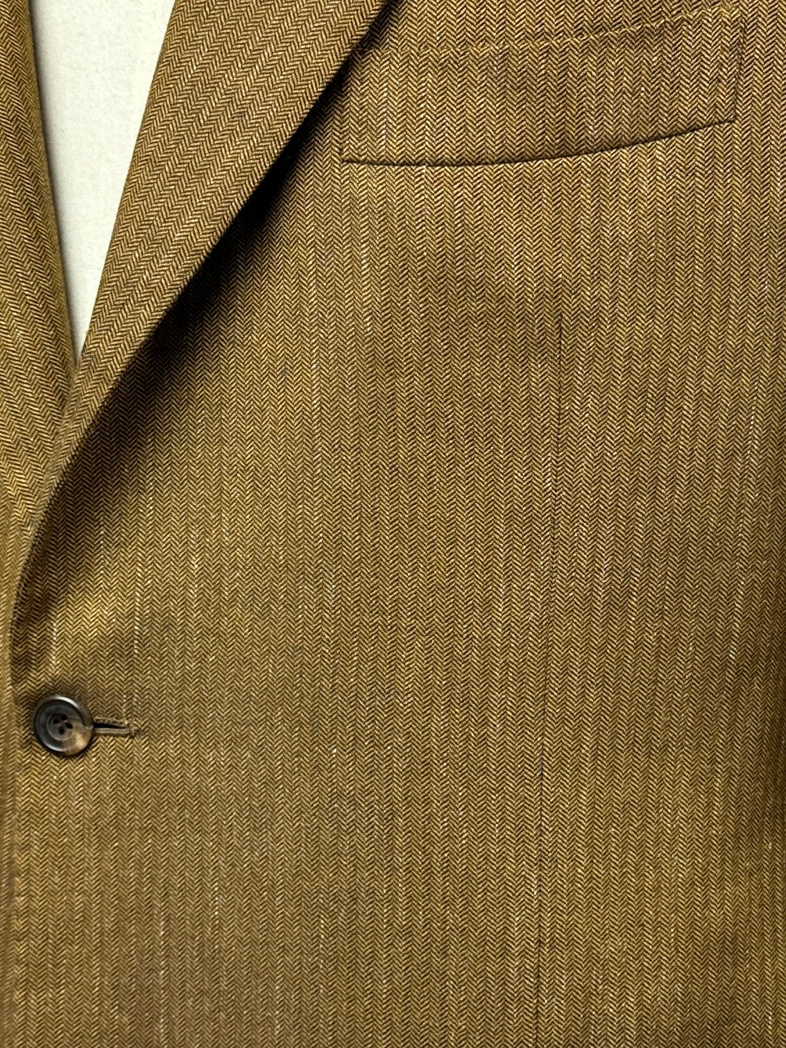 Maak kennis met het Kiton Bronze Cashmere & Linen Herringbone Jacket, een ware belichaming van luxe. Dit voortreffelijke jasje combineert de klassieke elegantie van een visgraatpatroon met de weelderige mix van kasjmier en linnen in een rijke bronstint. Het is tot in de perfectie handgemaakt door de bekwame ambachtslieden van Kiton en belichaamt uitmuntendheid en verfijning op het gebied van kleermakerswerk. Verhoog uw stijl met dit opmerkelijke stuk, waar tijdloos design en ongeëvenaard comfort en weelde samenkomen.