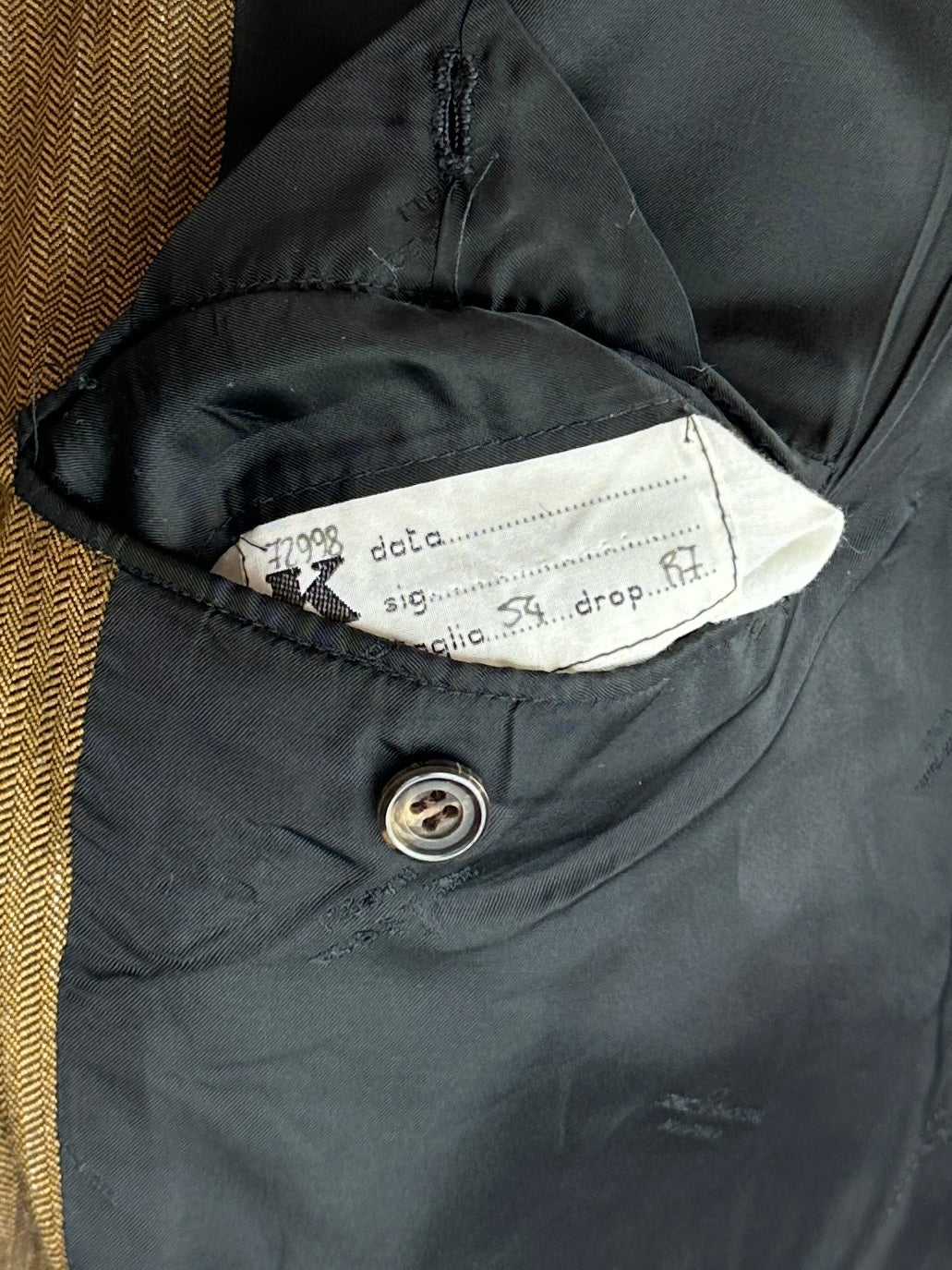 Een kleermakersjasje - of jas - heeft een tussenvoering nodig die helpt om het vorm te geven en te vormen. Canvas geeft het item een op maat gemaakte en ambachtelijke look. Kortom, het blaast leven in. Puur technisch, canvas is gemaakt van paardenhaar, wol, mohair of kamelenhaar. Het kan ook een mix van allemaal zijn, met verschillende diktes en gewichten. Het canvas wordt, vaak met de hand, aan het jasje gestikt, waardoor de stukken canvas 'zweven' in het midden van de binnen- en buitenstof. Dit geeft de jas extra flexibiliteit. Het canvas loopt van de bovenste delen helemaal door tot aan het uiteinde van de jas. Nadat je je canvaspak een tijdje hebt gedragen, begint het je vorm aan te nemen en er ongelooflijk natuurlijk uit te zien.