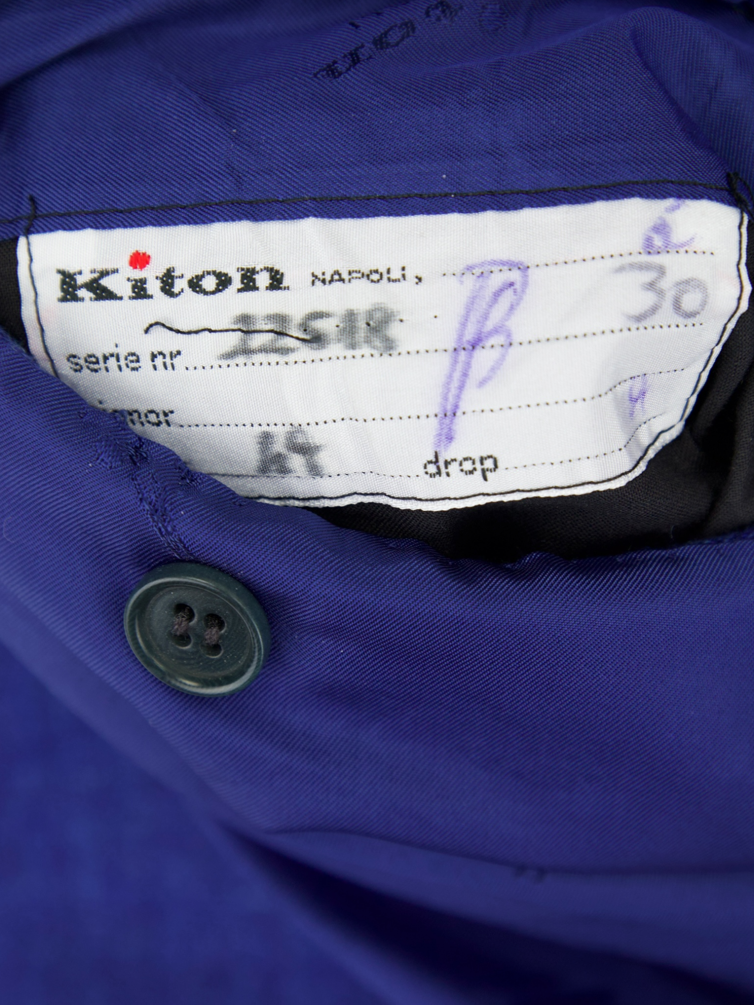 Fijn vervaardigd textiel is altijd een hoeksteen geweest bij Kiton: in hun eigen wolfabriek in Biella, Italië. Het gedeconstrueerde karakter van het kledingstuk en het gebruik van zacht garen bieden een authentieke, persoonlijke ervaring van verfijnd comfort dat allure en bewegingsvrijheid combineert. In een reis van kleermakersonderzoek en evolutie die herenkleding opnieuw definieert in naam van het essentialisme, is elk Kiton-jack een werk van verfijnd ontwerp. Volledig met de hand gesneden en gebouwd in Napels, hebben de 25 meestervaklieden van Kiton 1.800 stappen uitgevoerd om dit architecturale stuk te creëren.