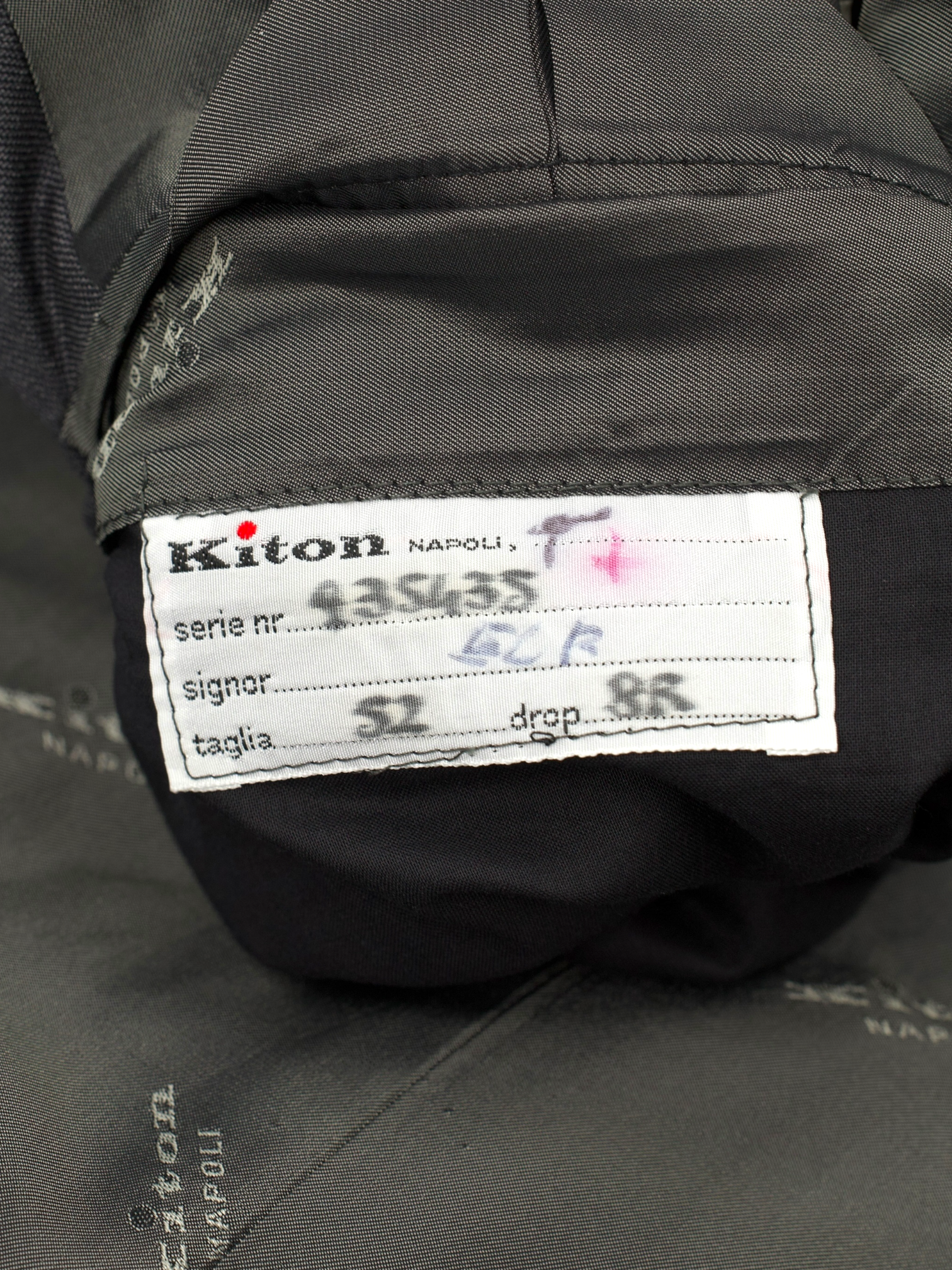 De meestervakmannen van Kiton voegen twee figuurnaden toe - denk aan ze als ingeknepen naden - om ervoor te zorgen dat het lichaam van het jasje een slank silhouet krijgt. Het proces, genaamd "mezzo punto riprese", wordt volledig met de hand uitgevoerd.