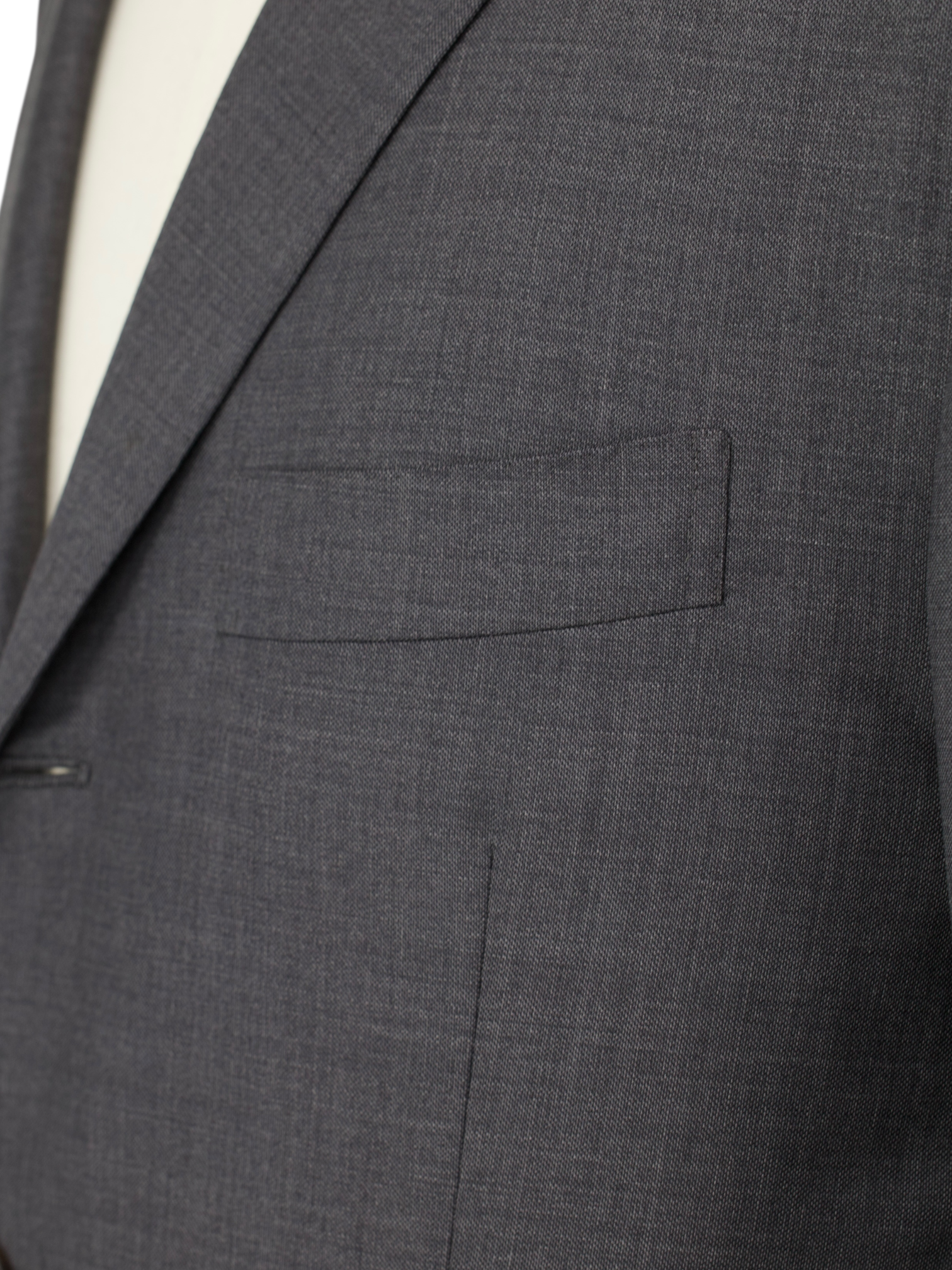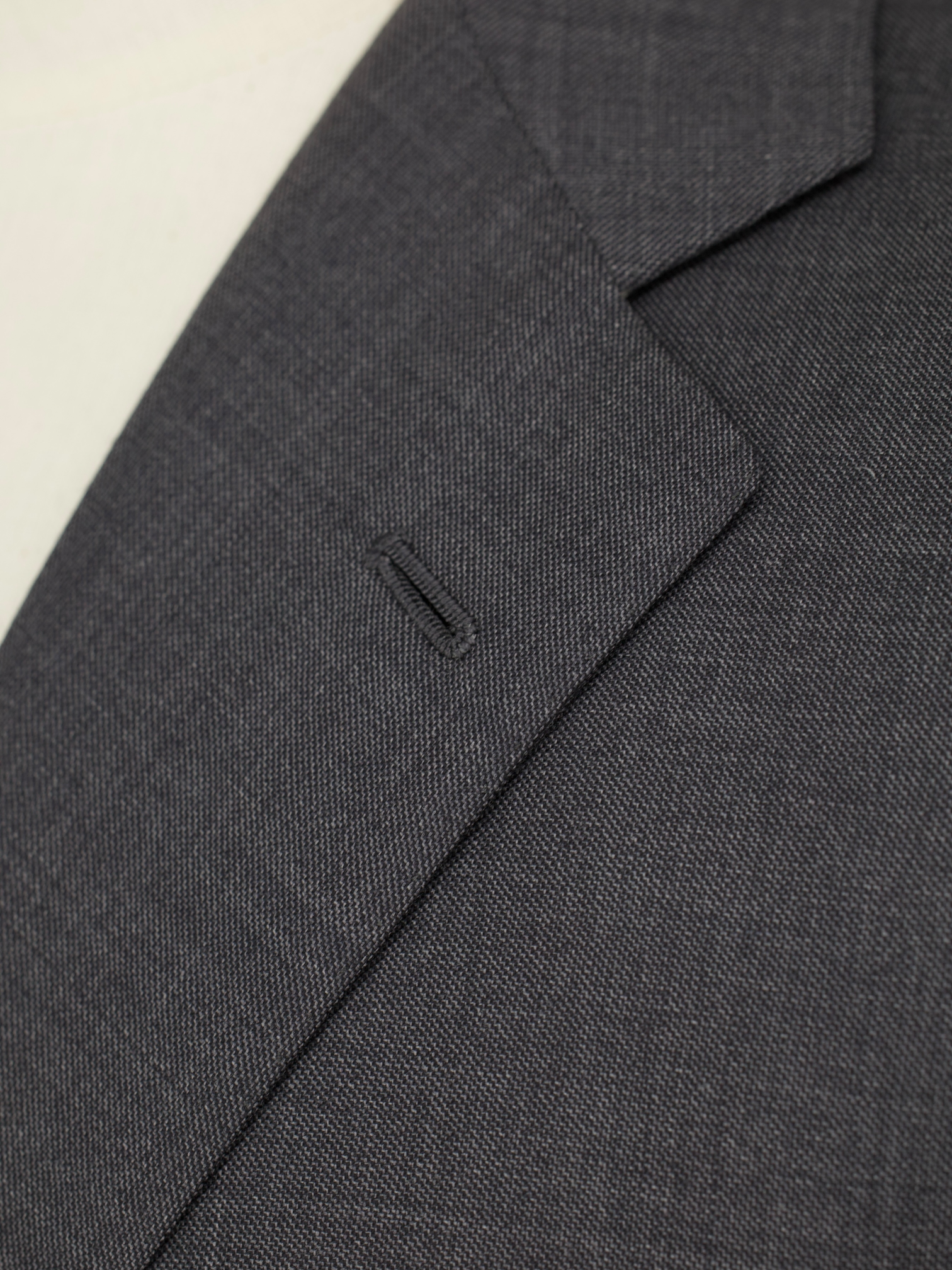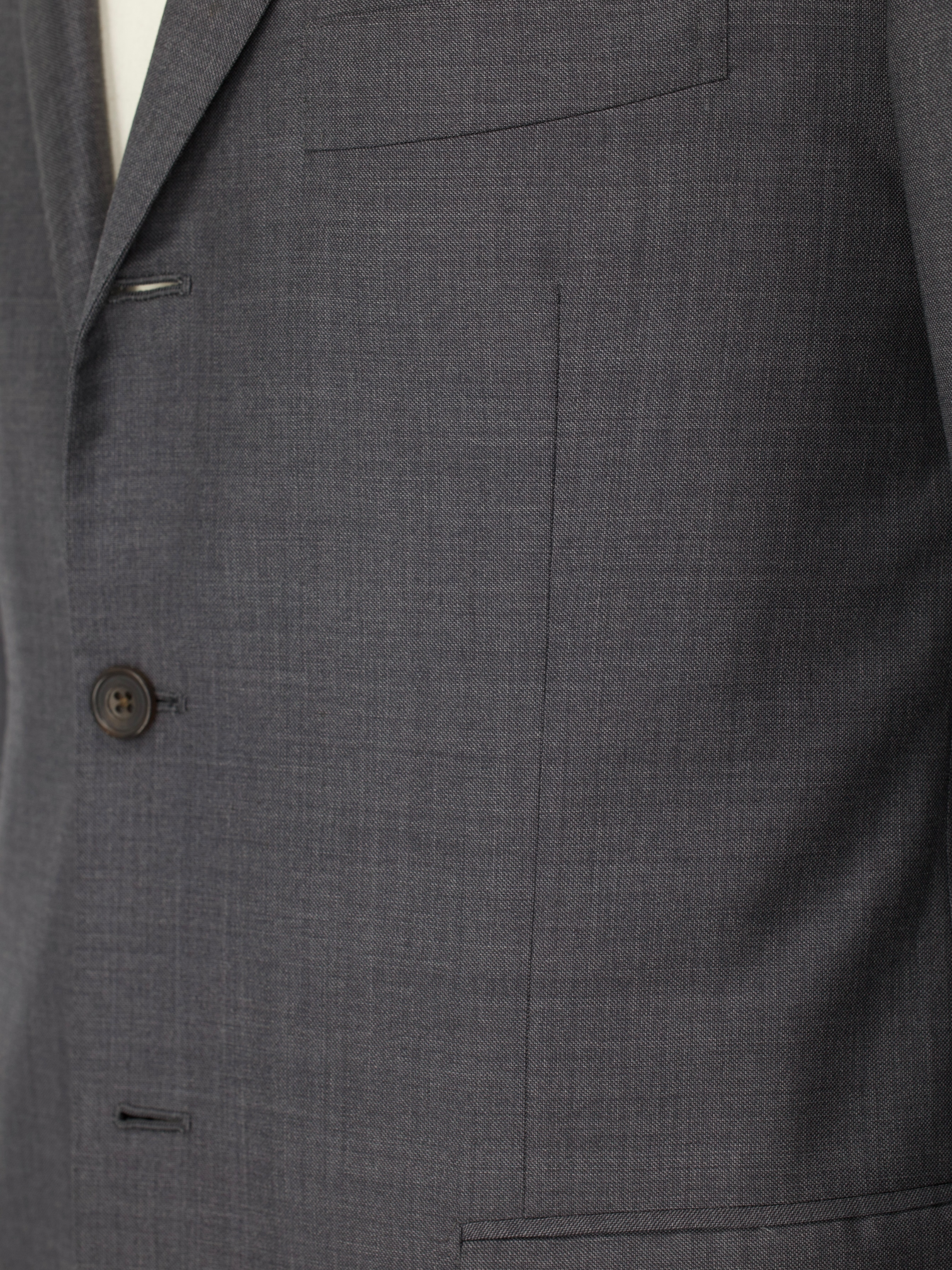 Woven from ultra-fine wool sourced and finished entirely in-house, the sharkskin cloth offers a lightweight feel with a crisp hand and gentle elasticity. It is breathable enough for year-round use, yet substantial enough to hold a perfect line throughout the day. Kiton’s meticulous handwork is evident in every detail, from the hand-attached collar and carefully rolled lapel to the precise stitching that runs through the interior. The trousers are cut with a classic rise and tailored leg, designed for comfort without compromising elegance.