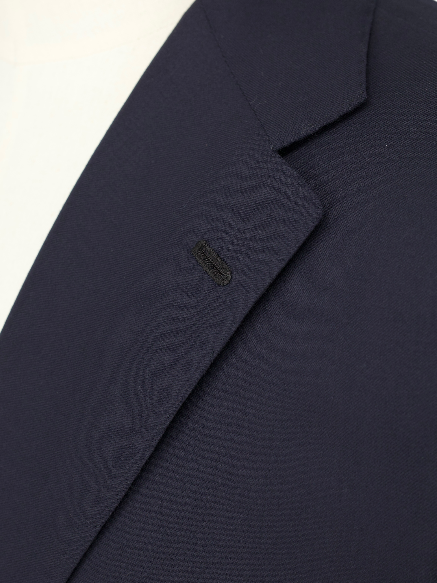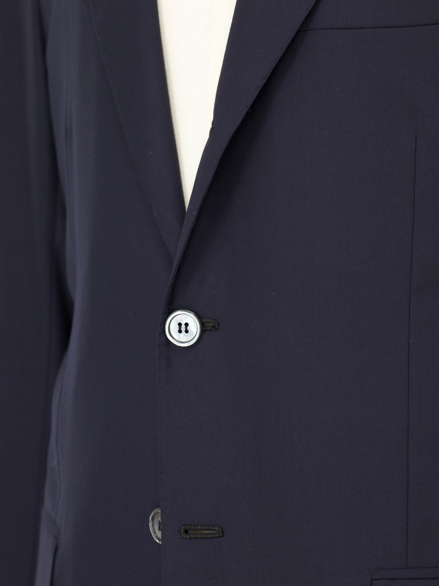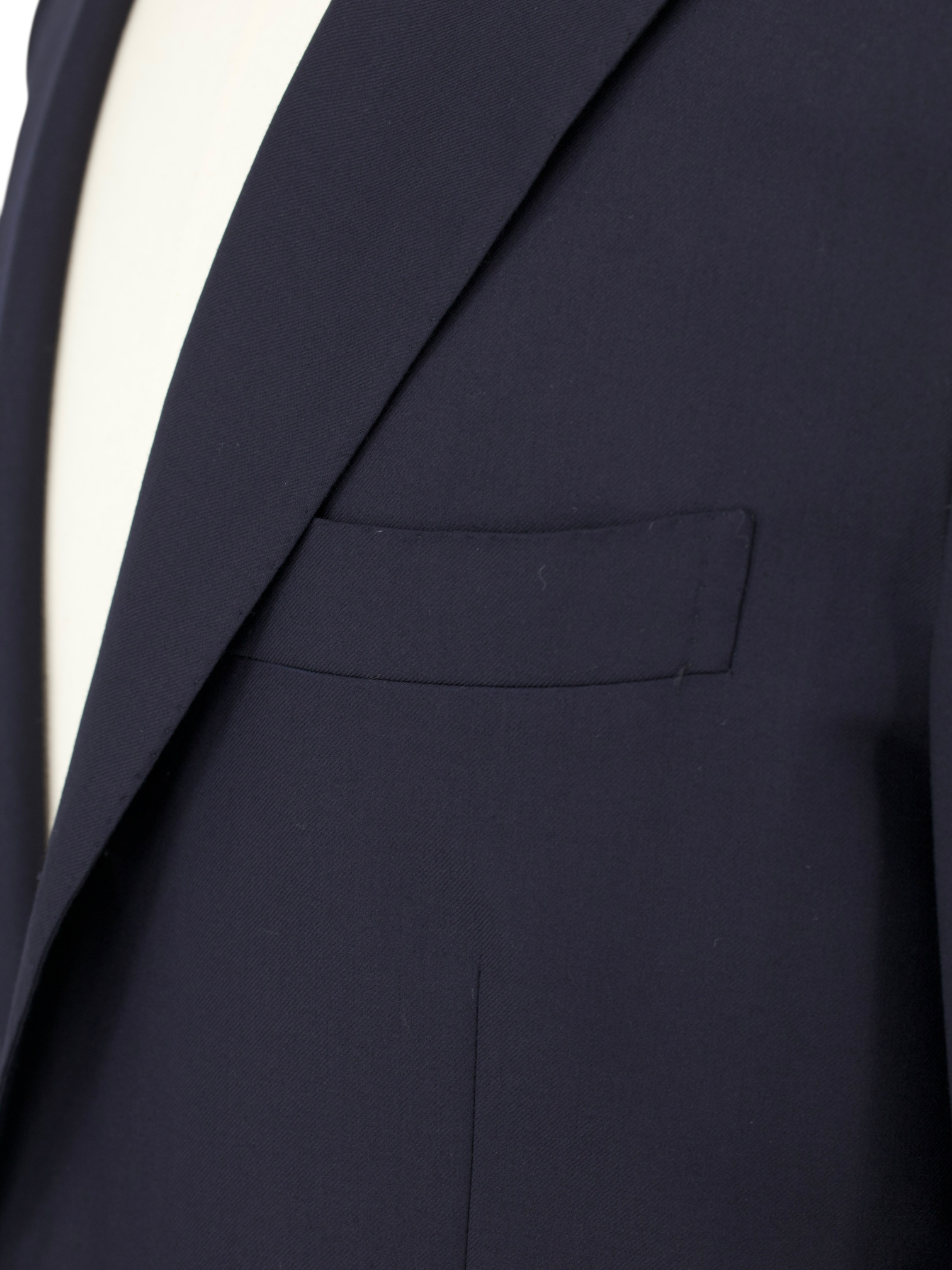 What sets this suit apart is its use of Kiton’s exclusive Diamante Blue fabric, a refined wool developed in-house with an obsessive focus on quality, texture, and depth of colour. The cloth is woven from ultra-fine fibres, often approaching Super 150s quality or finer, giving it a remarkably smooth touch and fluid drape. What gives Diamante Blue its name is the cloth’s understated luminosity, a subtle, almost iridescent finish that enhances the richness of the navy tone. Produced in limited quantities at Kiton’s Biella mill, the fabric is the result of artisanal methods and precision finishing that elevate it well beyond conventional suiting.