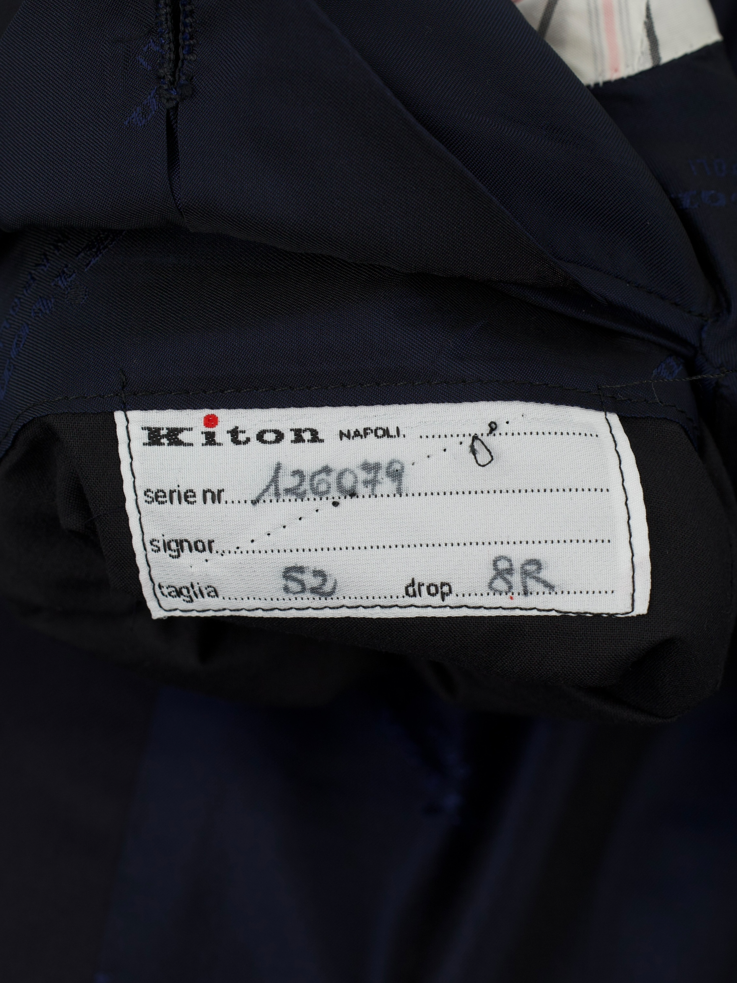 De meestervakmannen van Kiton voegen twee figuurnaden toe - denk aan ze als ingeknepen naden - om ervoor te zorgen dat het lichaam van het jasje een slank silhouet krijgt. Het proces, genaamd "mezzo punto riprese", wordt volledig met de hand uitgevoerd.