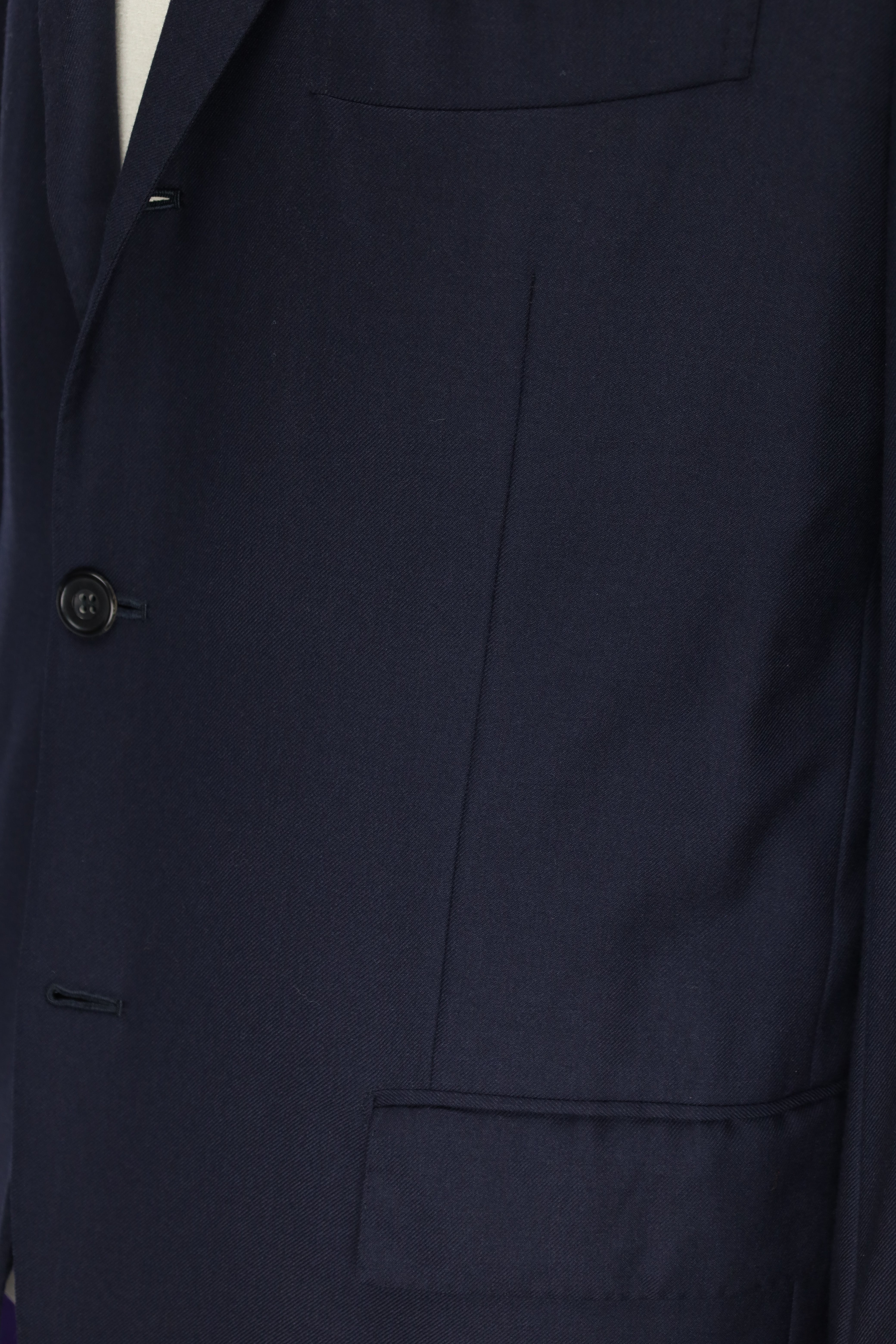 The Kiton Navy Super 180's (14-Micron) Jacket embodies unparalleled luxury and refinement. Meticulously crafted from the finest Super 180's wool, renowned for its exceptional softness and luxurious touch. The deep navy hue adds a timeless elegance, while the ultra-fine 14-micron fibers elevate its quality to the highest standards of luxury. Whether worn for formal occasions or refined everyday wear, it exudes effortless sophistication and discerning taste. Discover the elaborated sartorial details below.