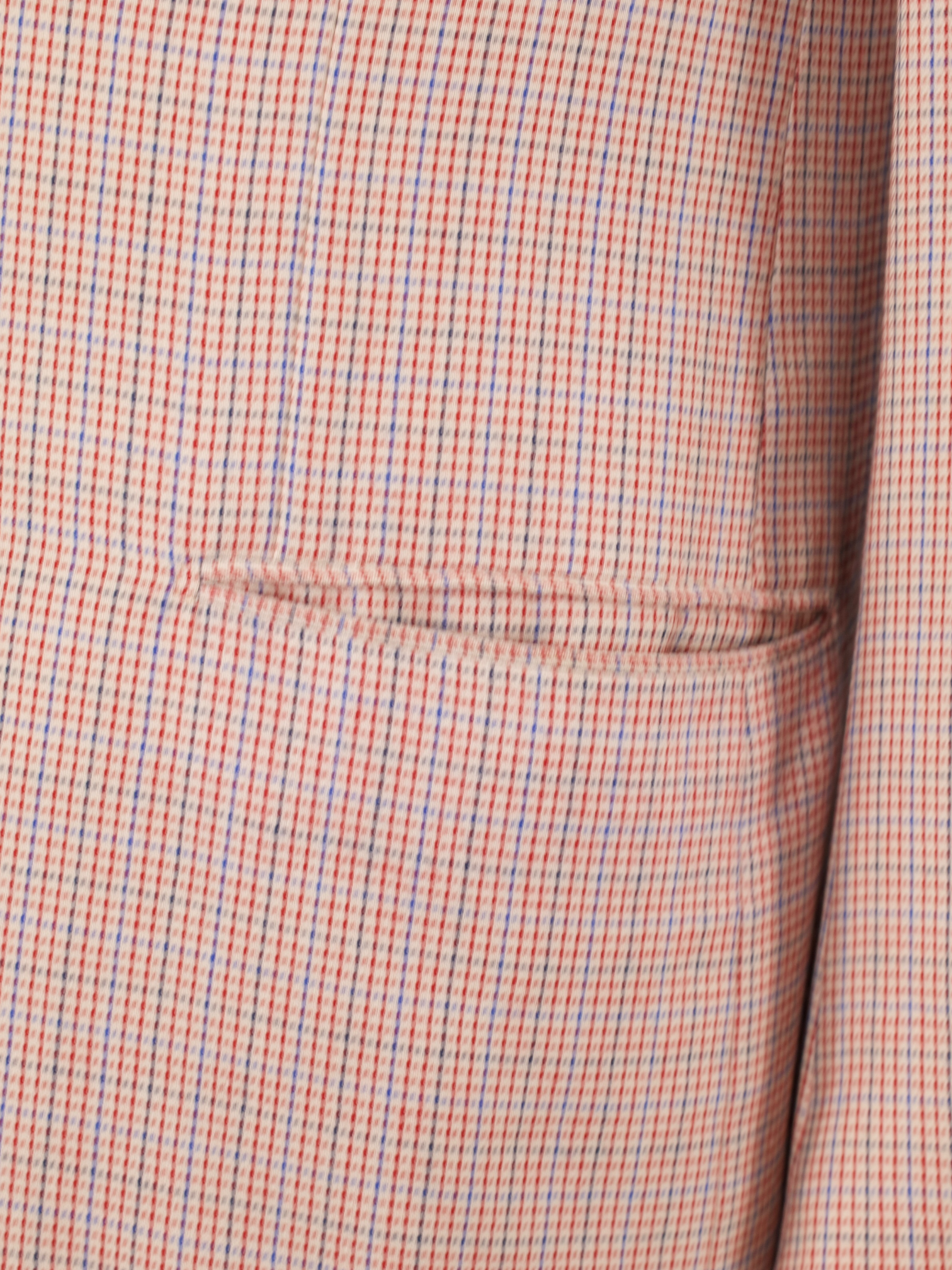 Discover the bold refinement of this vintage Kiton jacket, tailored in pure cashmere with a striking red and blue micro-check that reveals remarkable depth and richness upon closer inspection. The fabric is exceptionally soft, with a warm yet breathable handle that makes it ideal for cooler seasons. Designed with notch lapels, a 2.5 button closure, and flap pockets, the silhouette is classic Kiton, elegant, softly structured, and unmistakably Neapolitan. A fully lined interior offers comfort and shape, while the micro-check pattern adds a touch of character without overwhelming the composition.