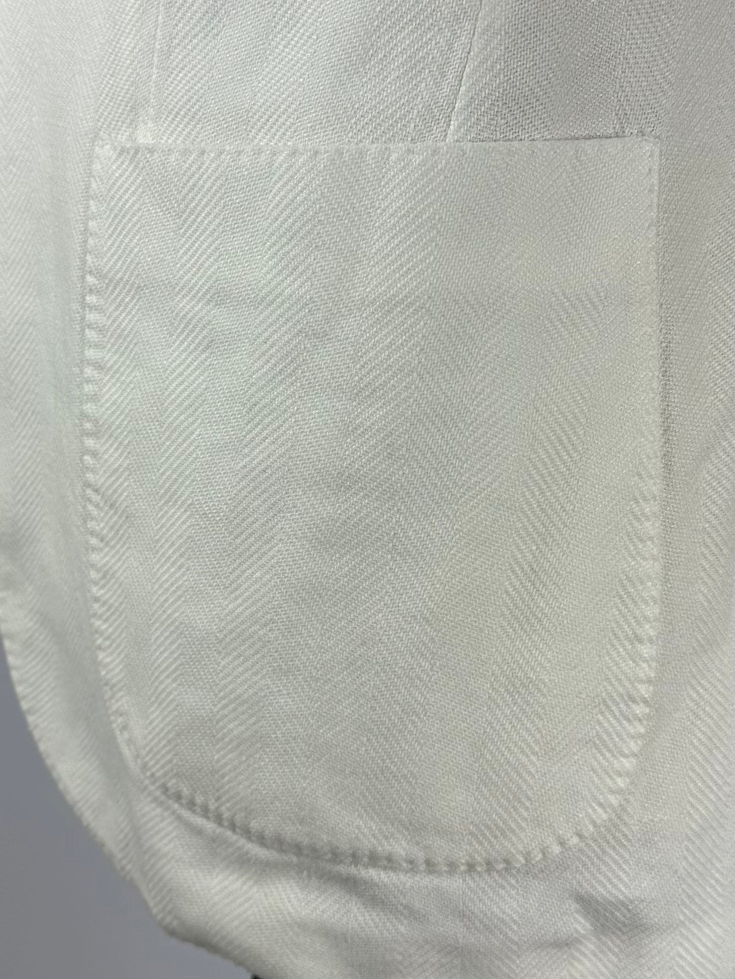 Ook bekend als 'barchetta', Italiaans voor 'bootje', wordt het zo genoemd omdat deze zak zweeft op de borst, lichtjes schuin omhoog, net als de boeg van een zeilboot. Deze zakken echoën de levendige rol van een revers die de veerkracht van canvas en natuurlijke wol draagt, in tegenstelling tot machinaal gemaakte borstzakken die een meer platte, rechthoekige vorm hebben en minder leven.