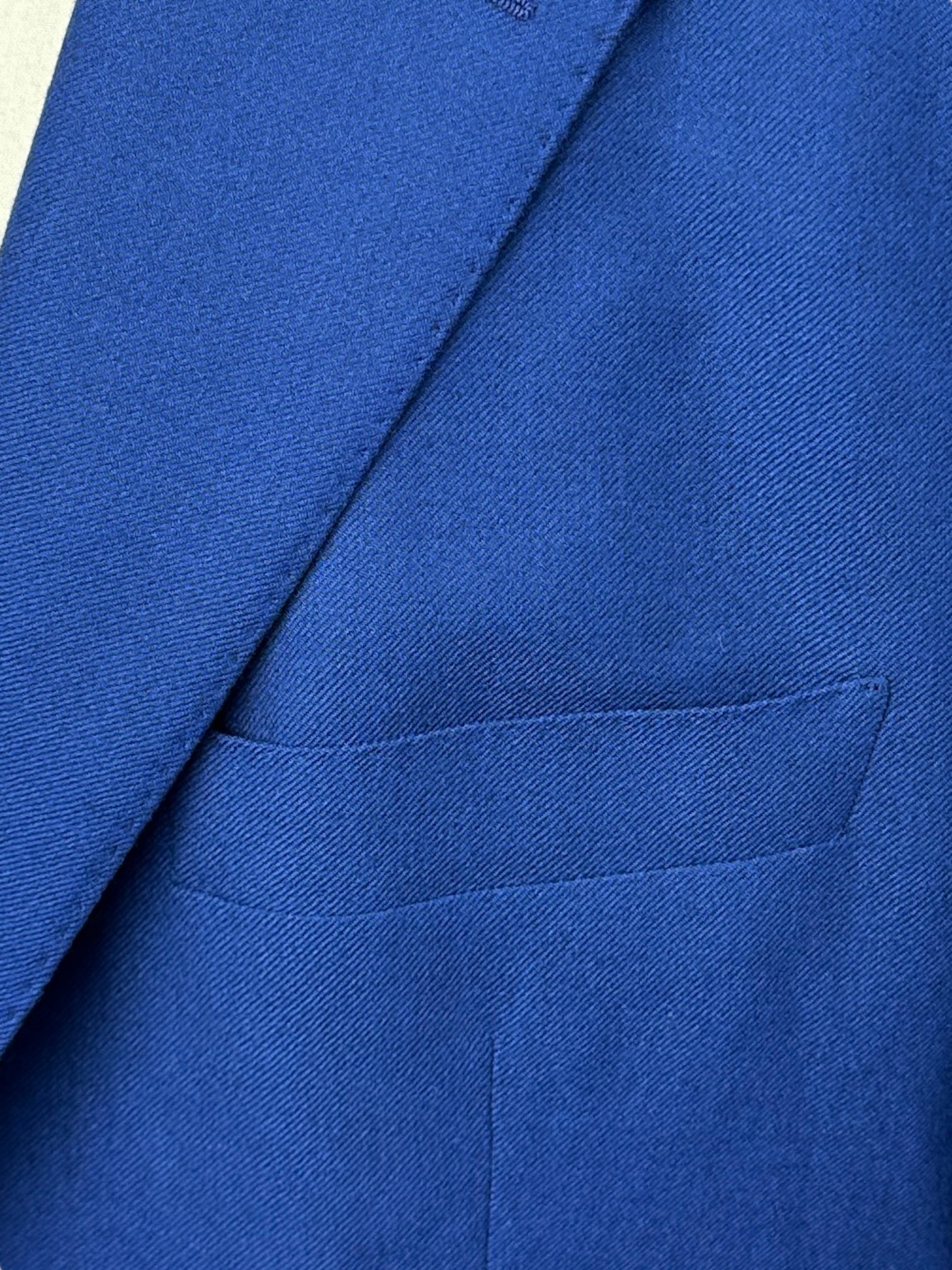 De 'tre bottoni stirato a due', ook bekend als de drie rollend op twee reversstijl, is misschien wel het meest beruchte kenmerk van het Neapolitaanse stijl jasje. De bovenste knoop en knoopsgat zijn decoratief, dus blijven ongeknoopt. Terwijl de revers omlaag rolt, vouwt het elegant over de bovenste knoop en stopt net 4 cm boven de tweede knoop, wat de kenmerkende rol van de revers creëert waar de stijl om bekend staat. Omdat het bedoeld is om ongeknoopt te blijven, wordt het bovenste knoopsgat eigenlijk binnenstebuiten gemaakt, zodat de mooie kant nog steeds zichtbaar is.