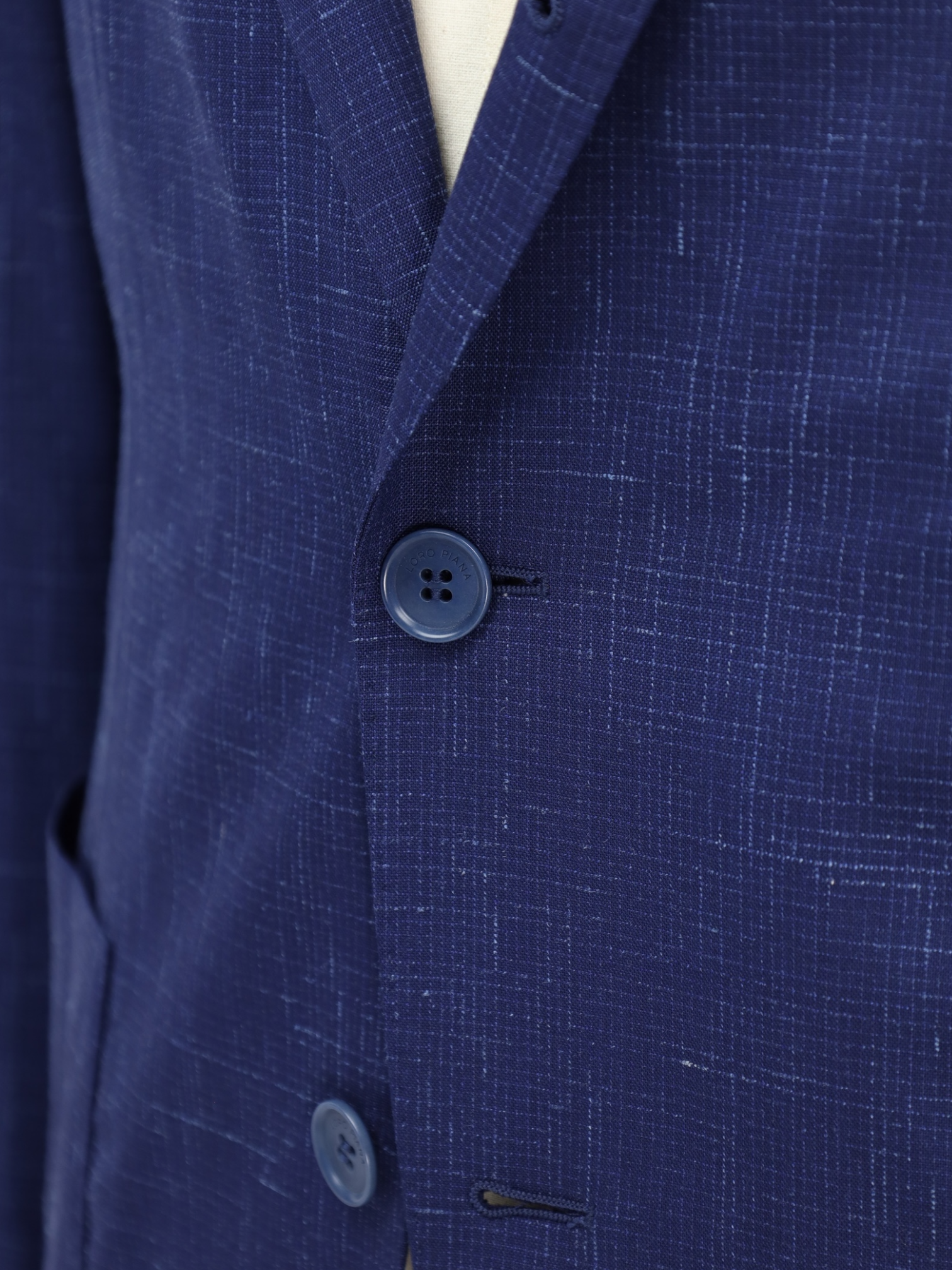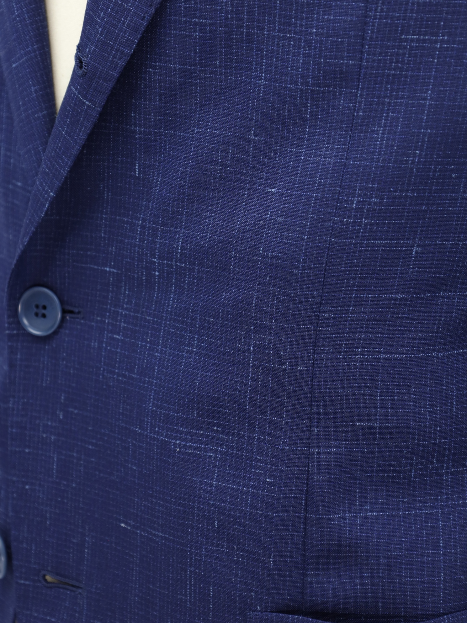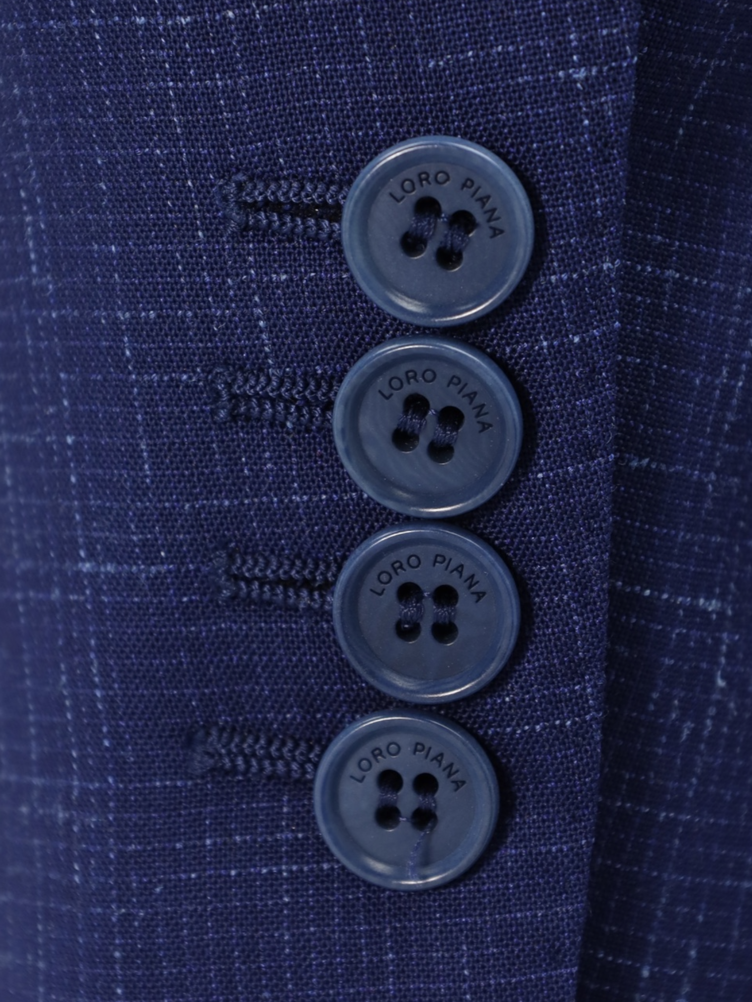 The Loro Piana Neapolitan Blue Wool, Linen & Silk Suit is a perfect blend of style and comfort. Crafted from a mix of wool, linen, and silk, this suit offers breathability and elegance. Each piece is meticulously tailored by Loro Piana’s skilled artisans, ensuring a perfect fit and refined appearance. Discover the elaborated sartorial details below.