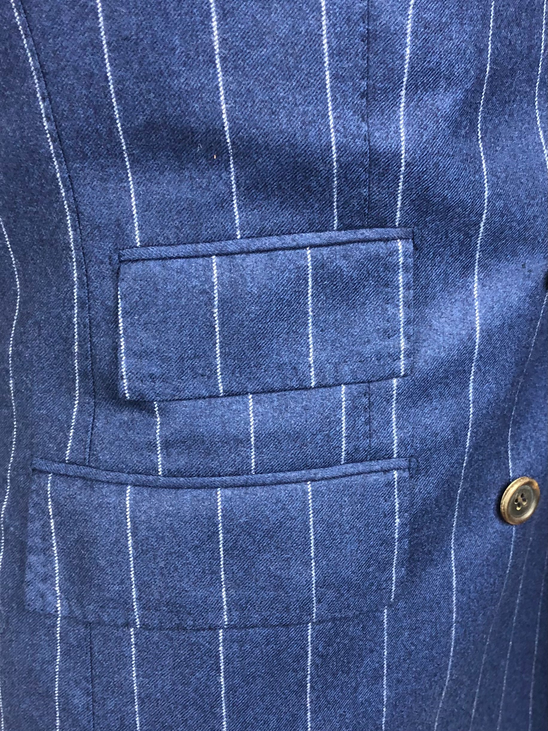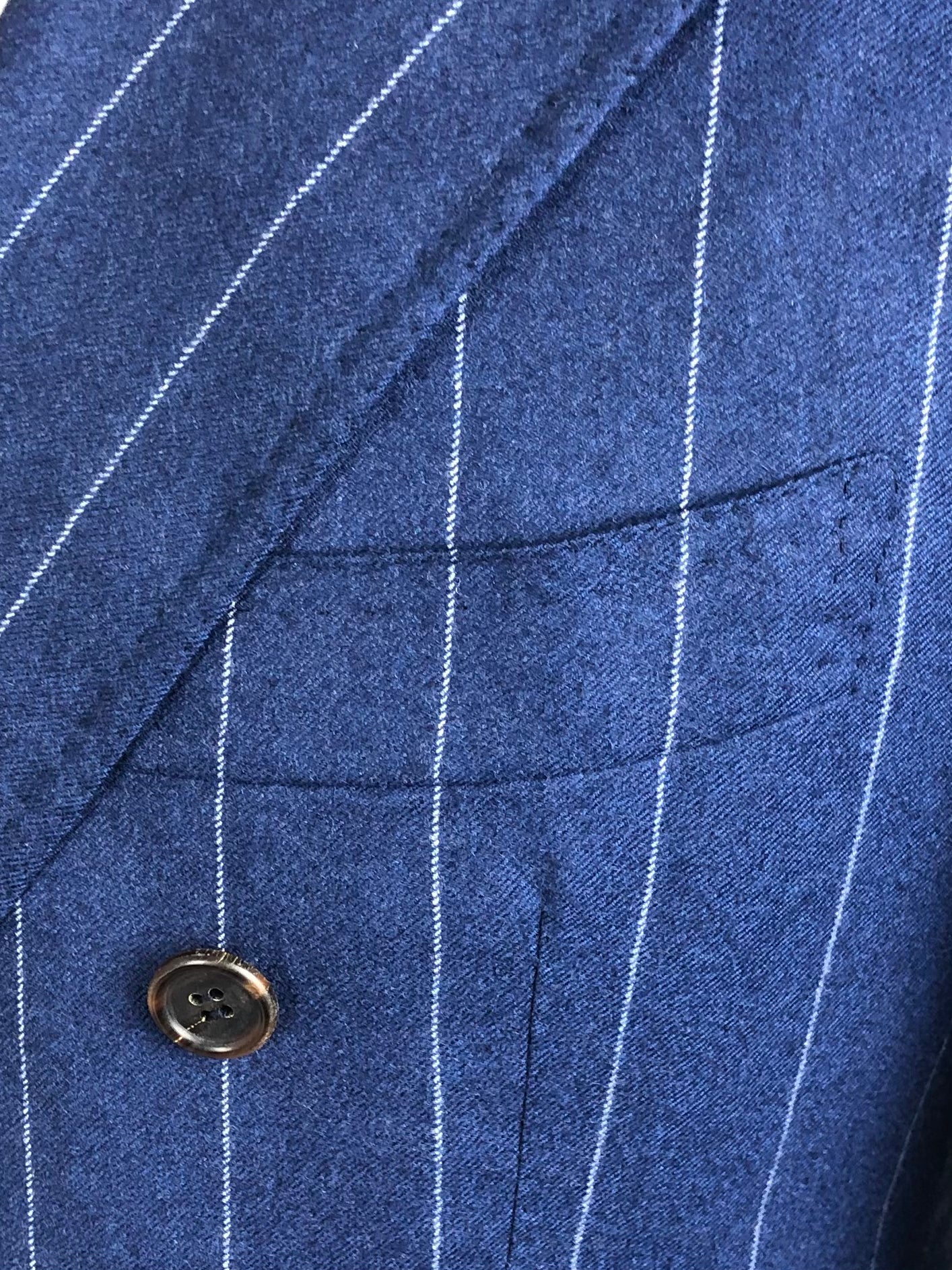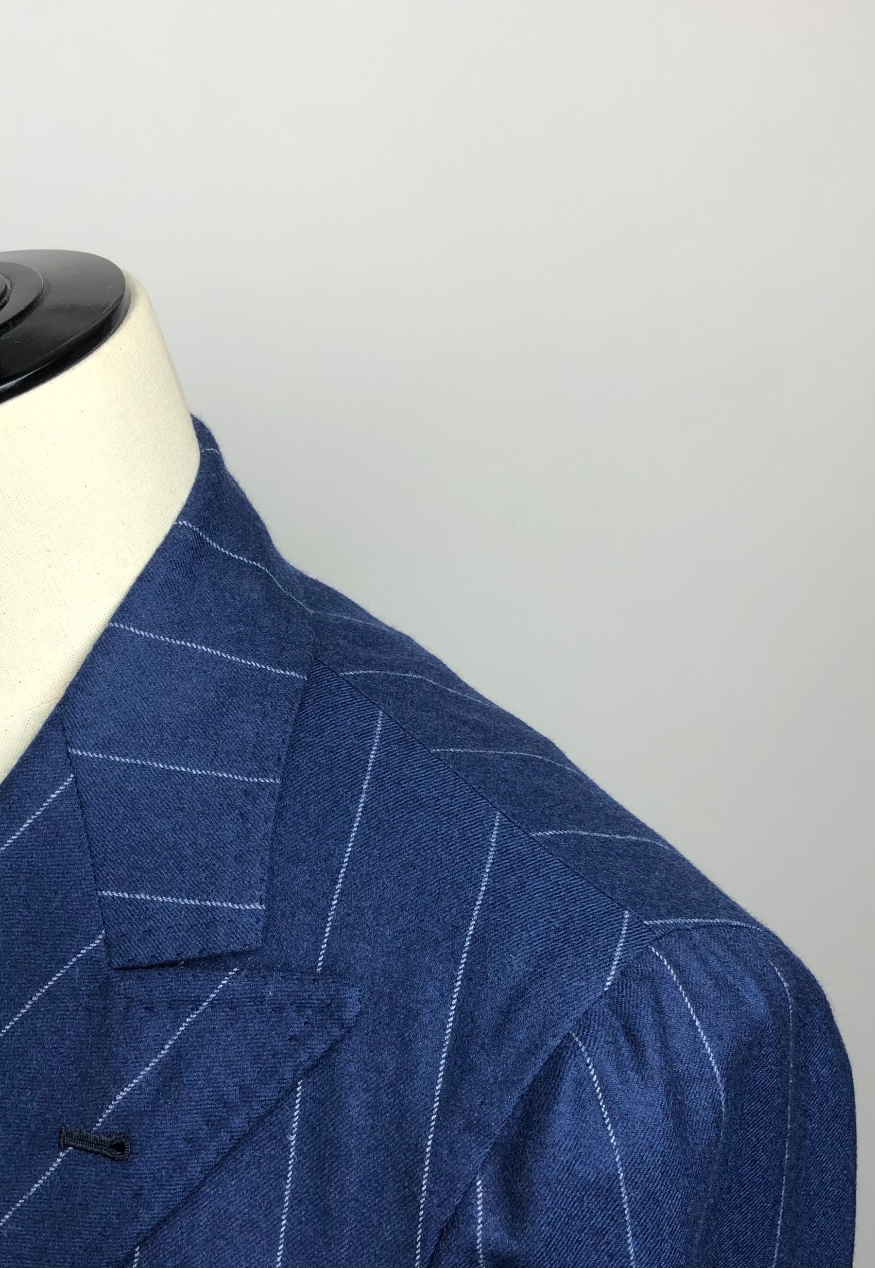 De doppio impuntura of 'dubbele stiksels'. Het is gemaakt als een stiksteek, wat een zeer tijdrovend proces is dat eruitziet als een klein stipje op het oppervlak van de stof. De doppio impuntura loopt door langs de zijkanten van de revers, kraag, zakken en schoudernaad. Als zichtbaar detail van handwerk kan het gezien worden als het ultieme vleugje elegantie.