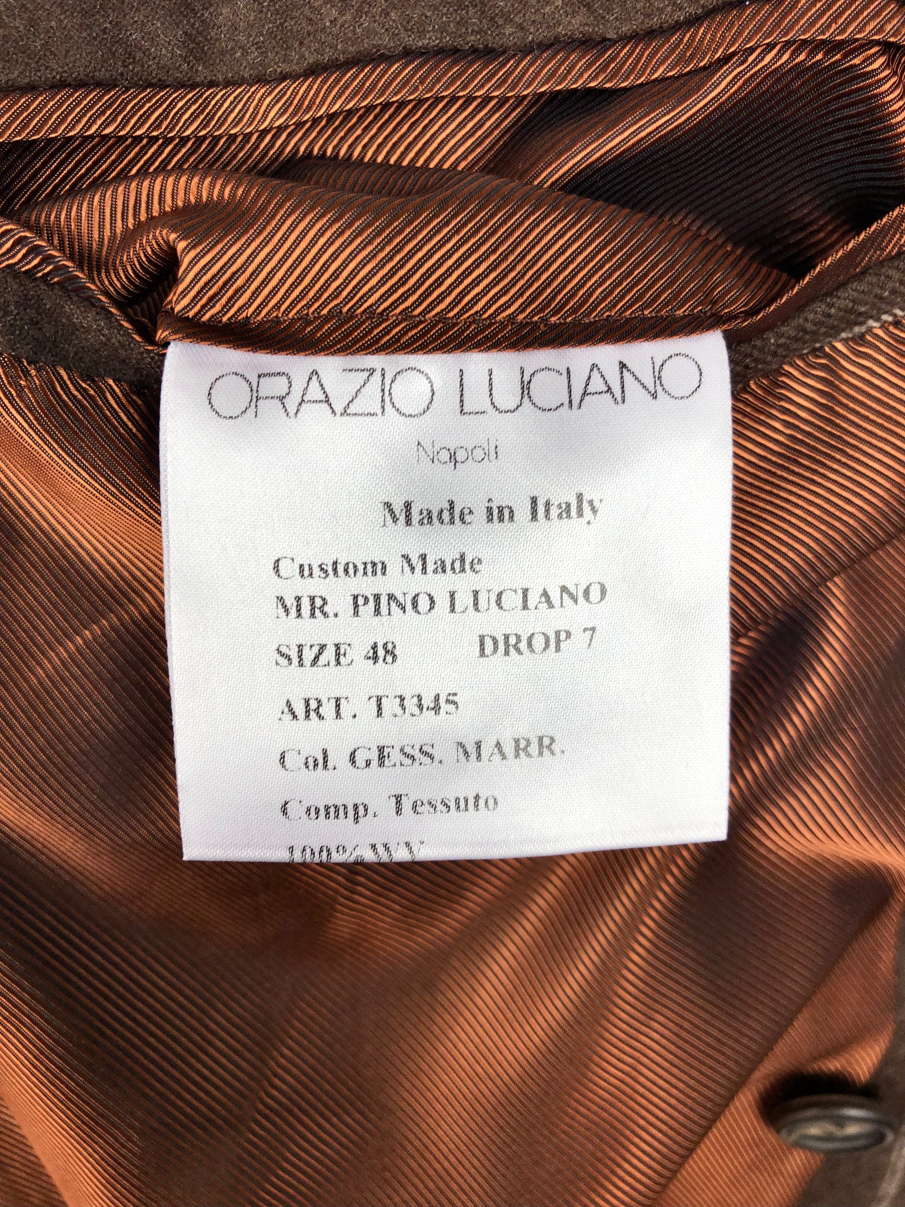 Van het knippen tot het laatste strijkproces, de kleermakers in de kleine fabriek van Orazio Luciano hebben meer dan 25 uur nodig voor de productie van één enkel pak. De afzonderlijke werkstappen worden zorgvuldig met de hand gemaakt in afzonderlijke stations. Van het knippen tot het naaien van de zakken, het knippen van de revers, de met de hand genaaide knoopsgaten, het passen van de mouwen en natuurlijk het passen van de voering.