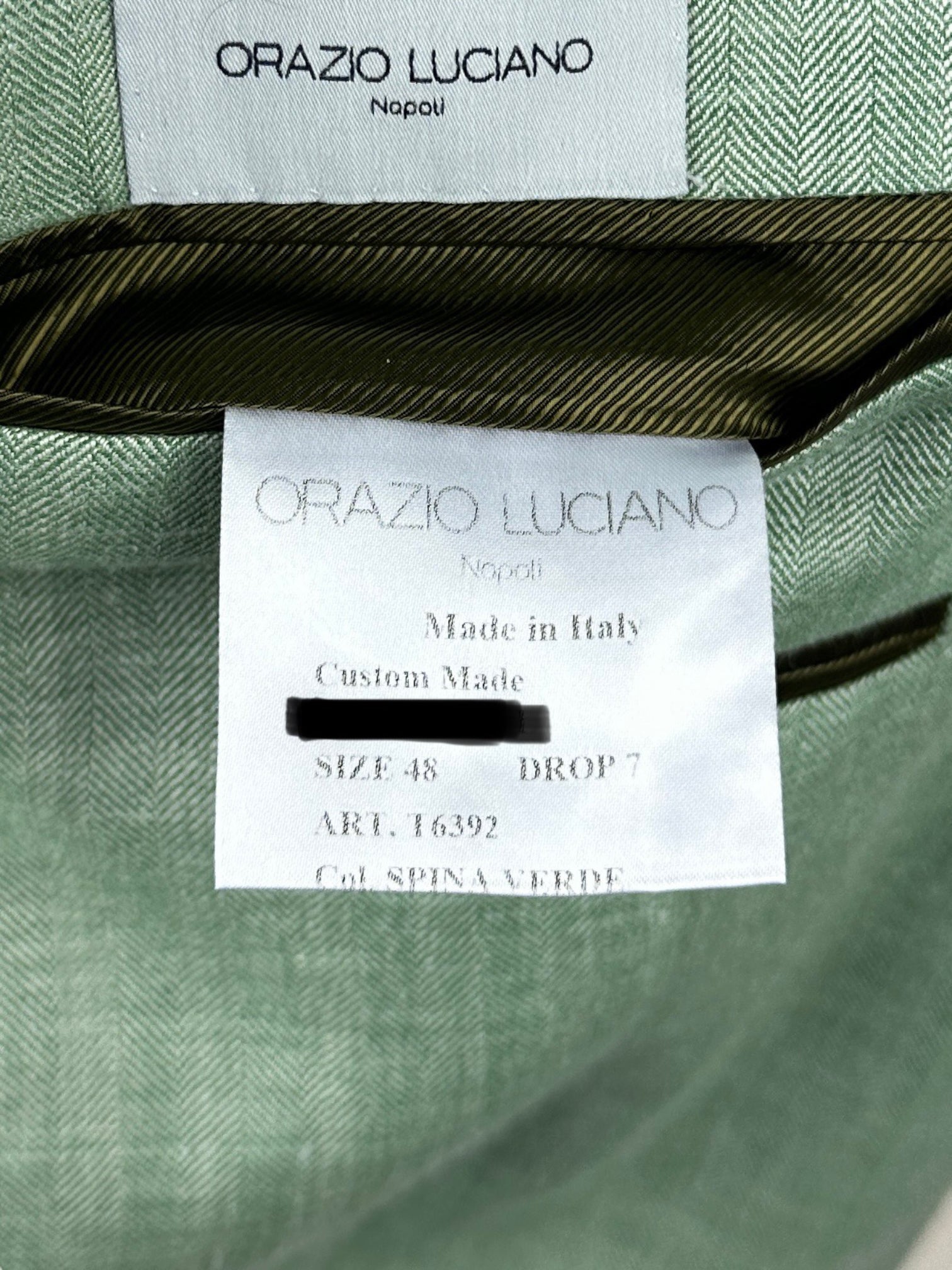 Vanaf het snijden tot het laatste strijkproces hebben de kleermakers in de kleine fabriek van Orazio Luciano meer dan 25 uur nodig voor de productie van één enkel pak. De afzonderlijke werkstappen worden in individuele stations nauwgezet met de hand gemaakt. Van het knippen tot het naaien van de zakken, het knippen van de revers, de met de hand genaaide knoopsgaten, het passen van de mouwen en uiteraard het passen van de voering.