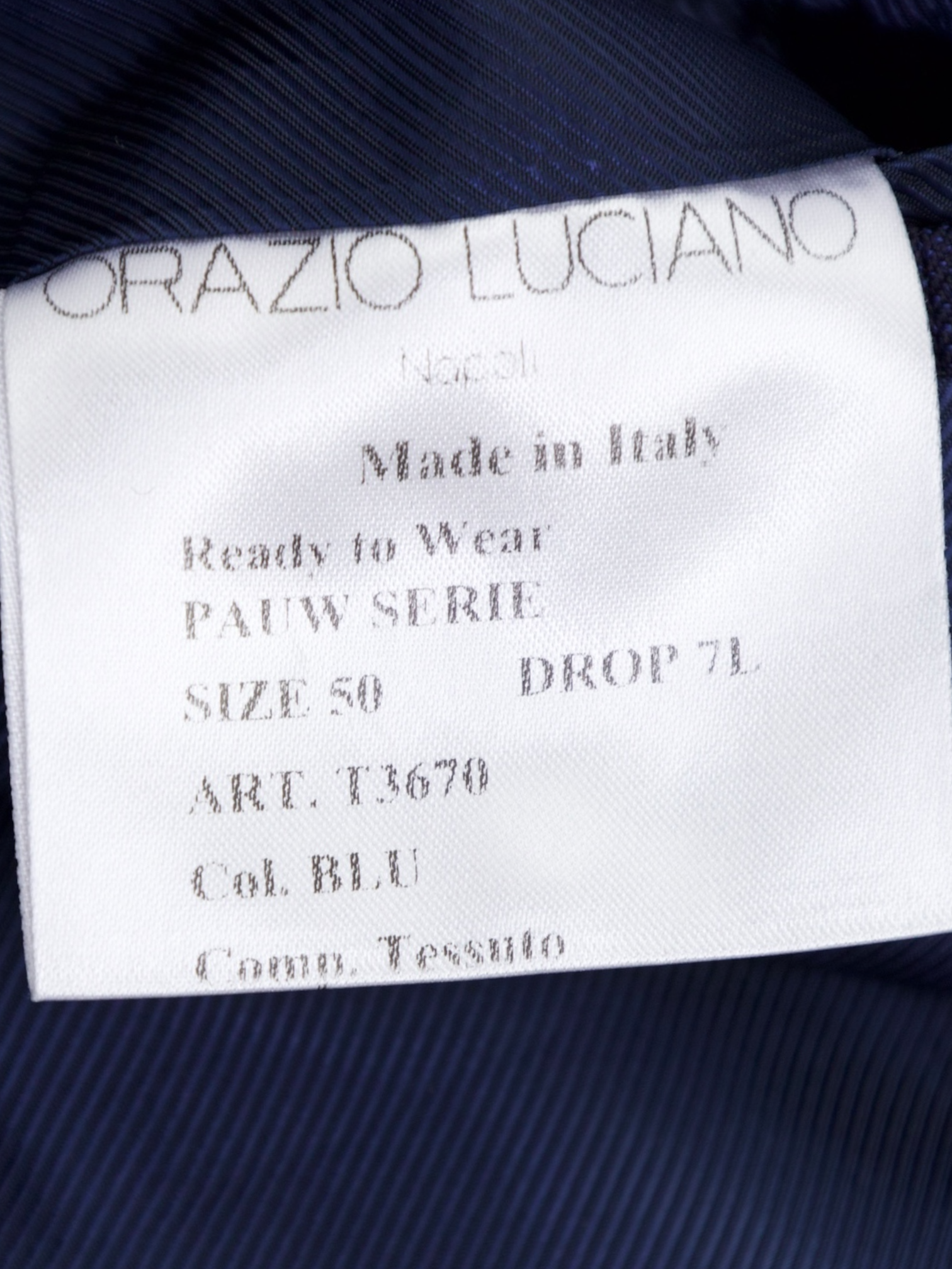 Orazio Luciano’s dedication to traditional Neapolitan tailoring is evident in every stitch of this suit. Each piece is meticulously handmade in Naples by master artisans, utilizing time-honored techniques passed down through generations. The suit’s construction includes hand-sewn canvassing, allowing it to conform naturally to the wearer’s frame over time. The artisans pay particular attention to details like hand-finished buttonholes and subtle pick stitching, enhancing both durability and aesthetic appeal. Discover the elaborated sartorial details below.