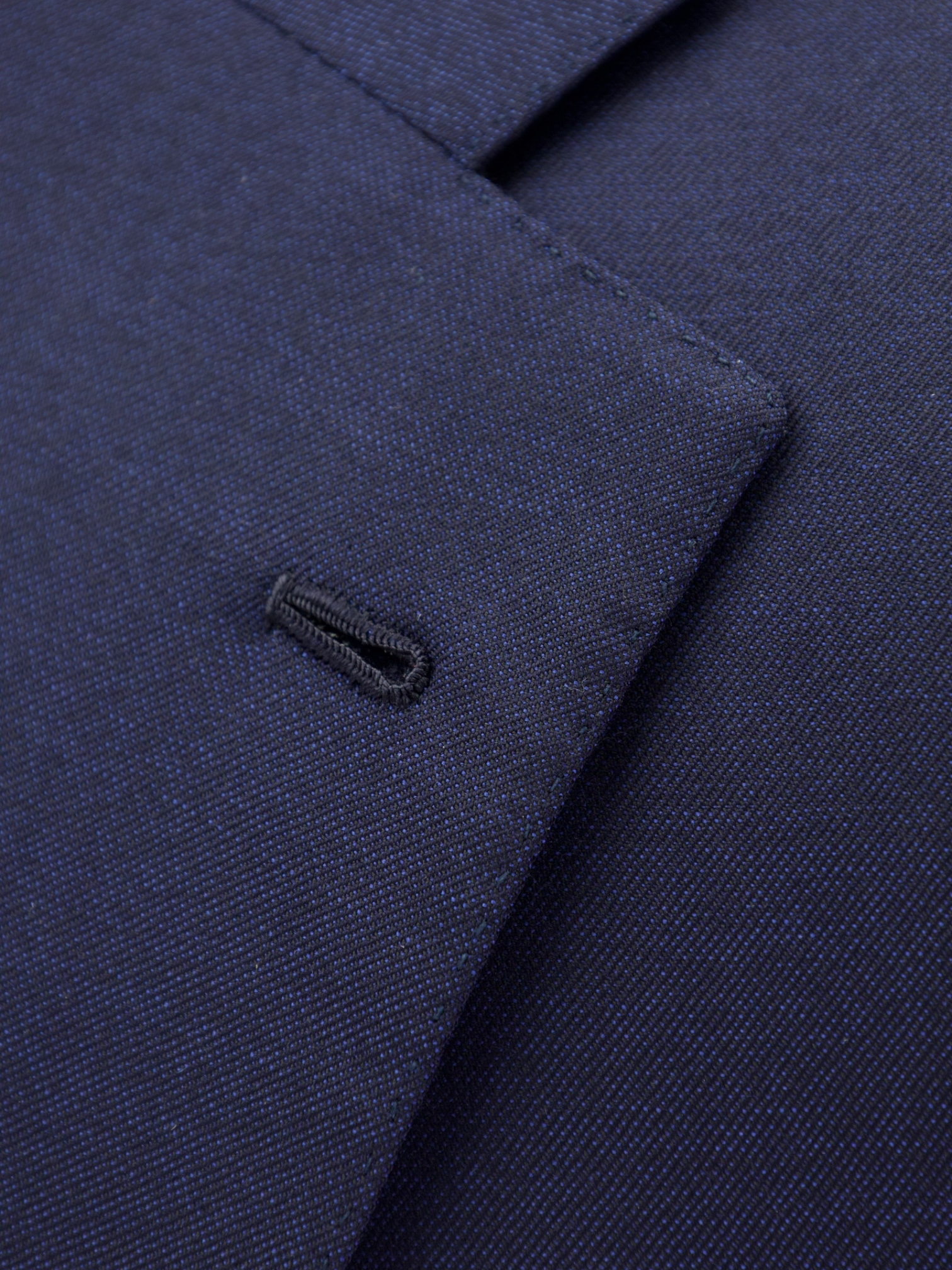 Discover the Orazio Luciano Navy Timeless Twill Suit, a pinnacle of Italian elegance crafted to elevate any discerning wardrobe. This suit is rendered in a refined navy twill, offering a versatile hue that effortlessly transitions from professional settings to formal occasions. Its silhouette, tailored to perfection, features a soft-shouldered Neapolitan cut that provides a natural drape and an effortless, elegant fit. The jacket’s peak lapels add a subtle touch of formality, while the half-lined interior ensures lightweight breathability, ideal for year-round wear.