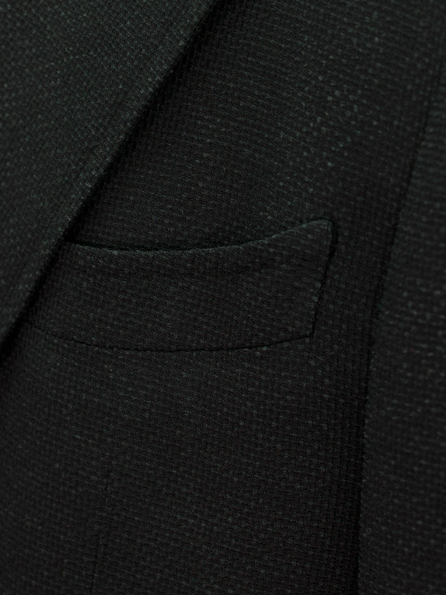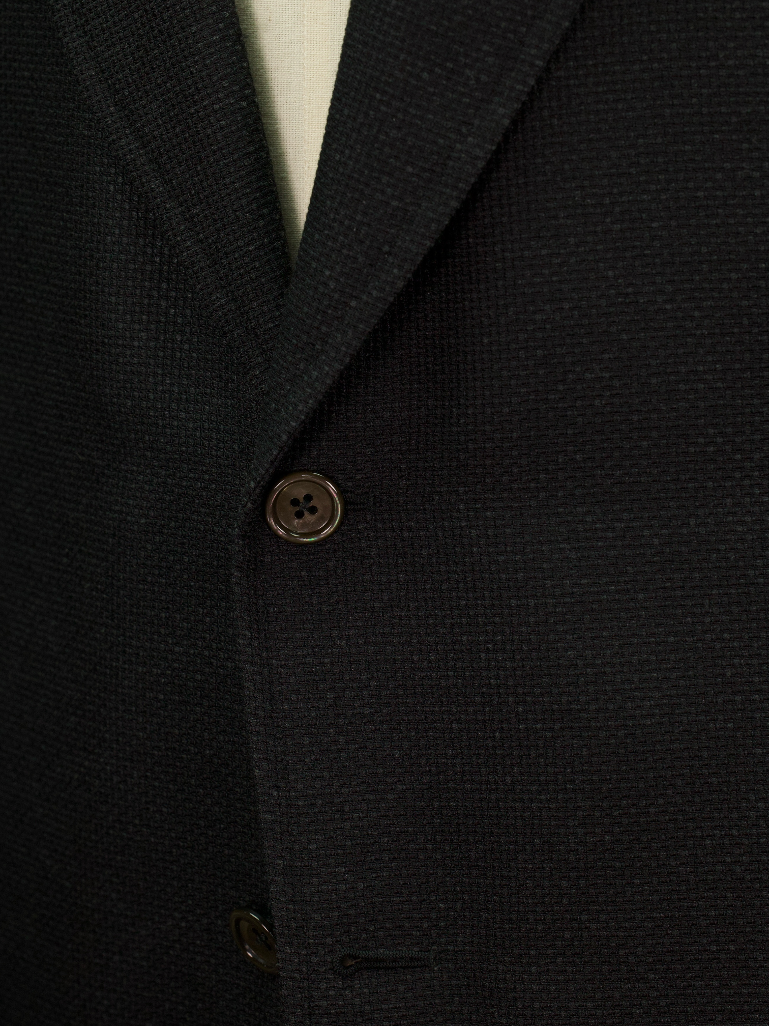 Dit jasje bevat geen knopen of knoopsgaten - net als een traditioneel op maat gemaakt jasje.