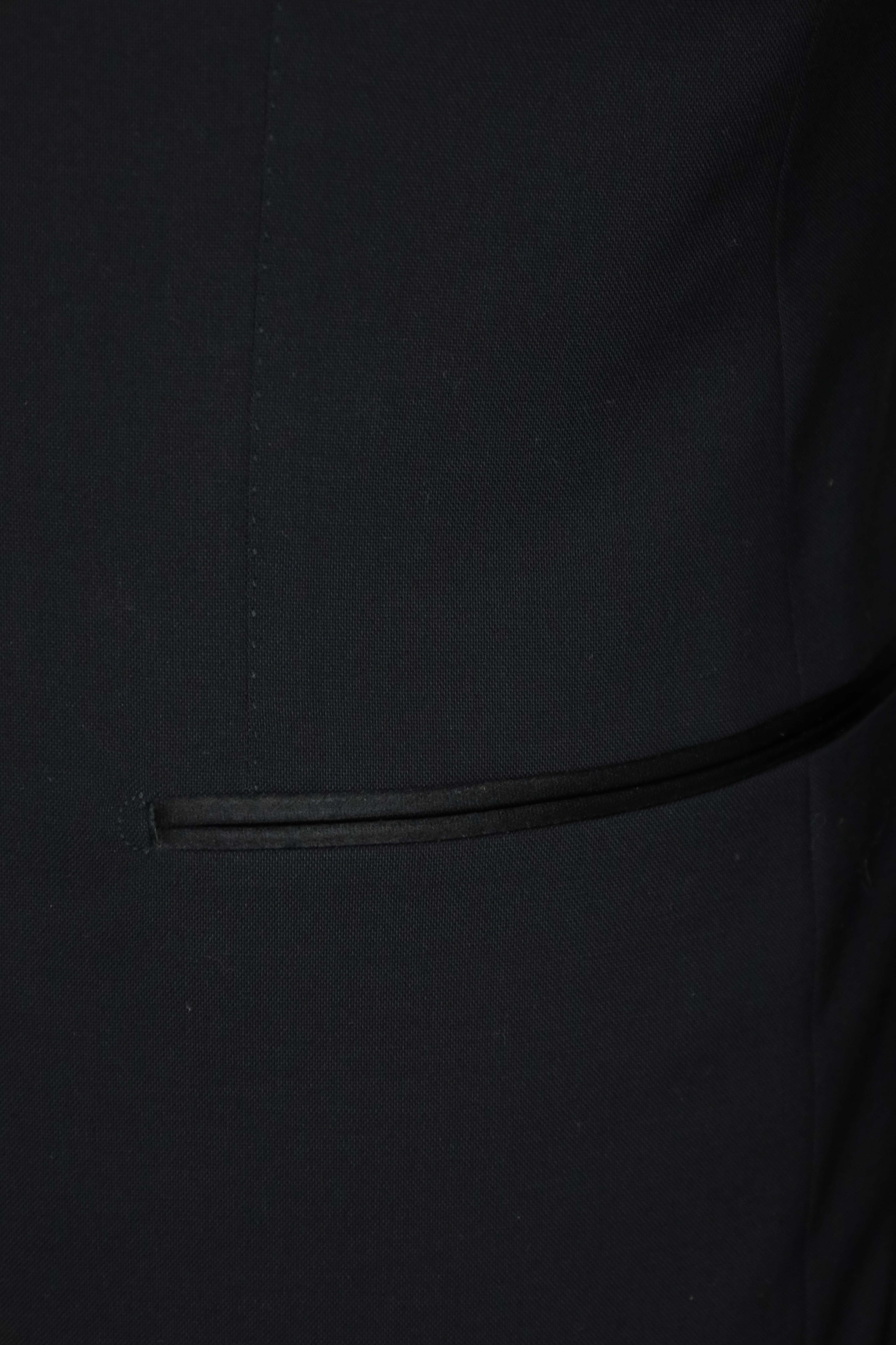 Stap in de spotlight met het Tom Ford Black Windsor Tuxedo Jasje, een typisch kledingstuk voor momenten die ongeëvenaarde elegantie vereisen. Dit smokingjasje, gemaakt van hoogwaardige materialen, biedt een onberispelijke mix van verfijning en tijdloze stijl. De diepzwarte tint en het scherpe silhouet maken een krachtig statement, terwijl de zorgvuldige constructie zorgt voor een perfecte pasvorm. Dit jack is ontworpen voor de man die de aandacht trekt en is de belichaming van het luxueuze ontwerpethos van Tom Ford. Of het nu gaat om een gala of een luxe bijeenkomst, het belooft een standaard te zetten op het gebied van elegantie voor herenkleding. Ontdek hieronder de uitgebreide kleermakersdetails.
