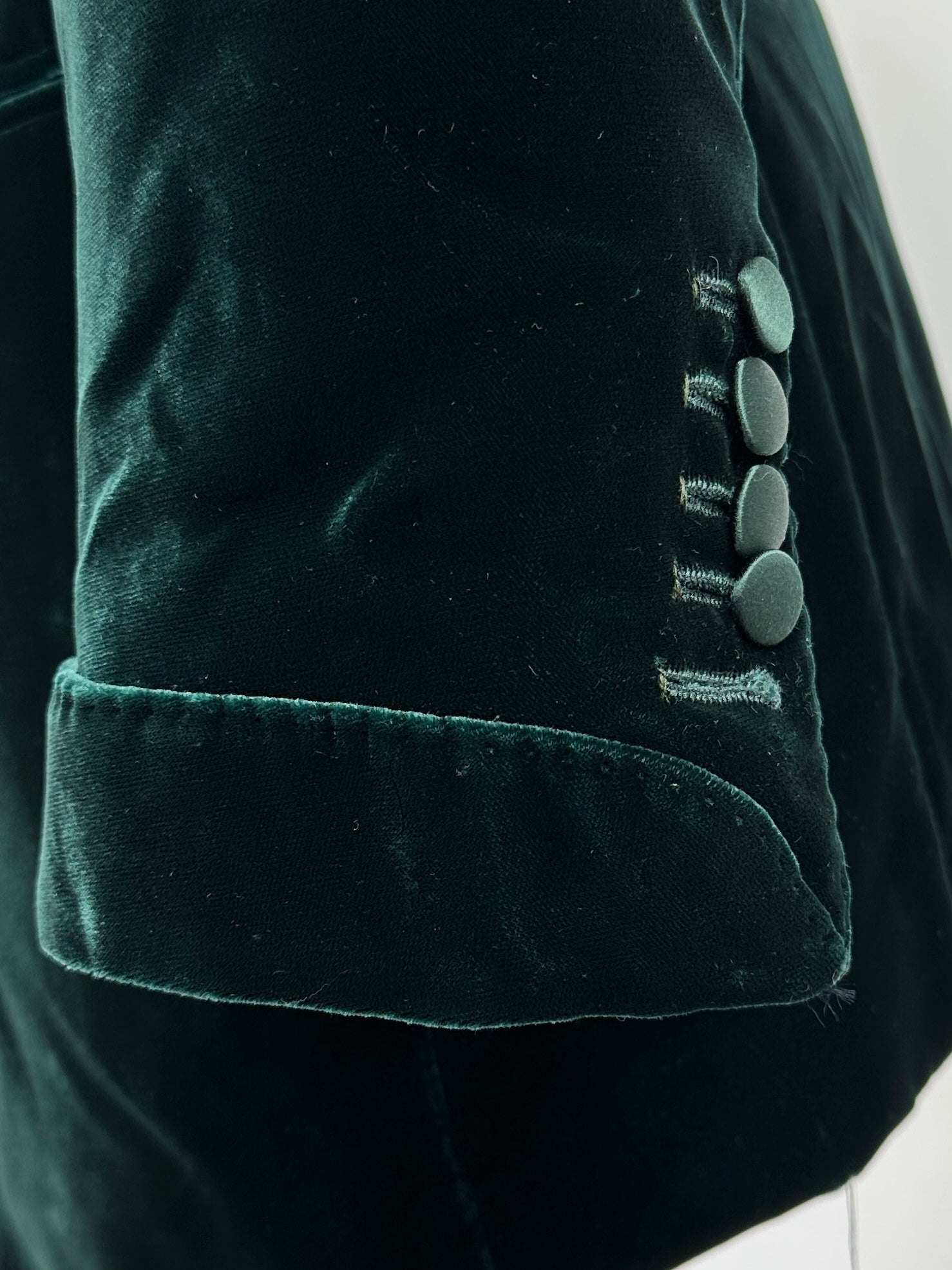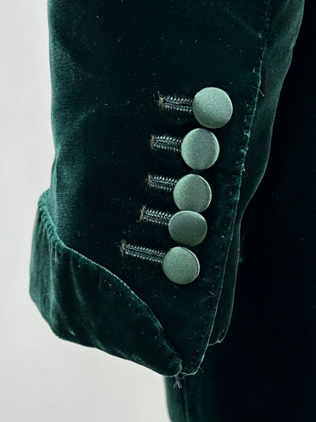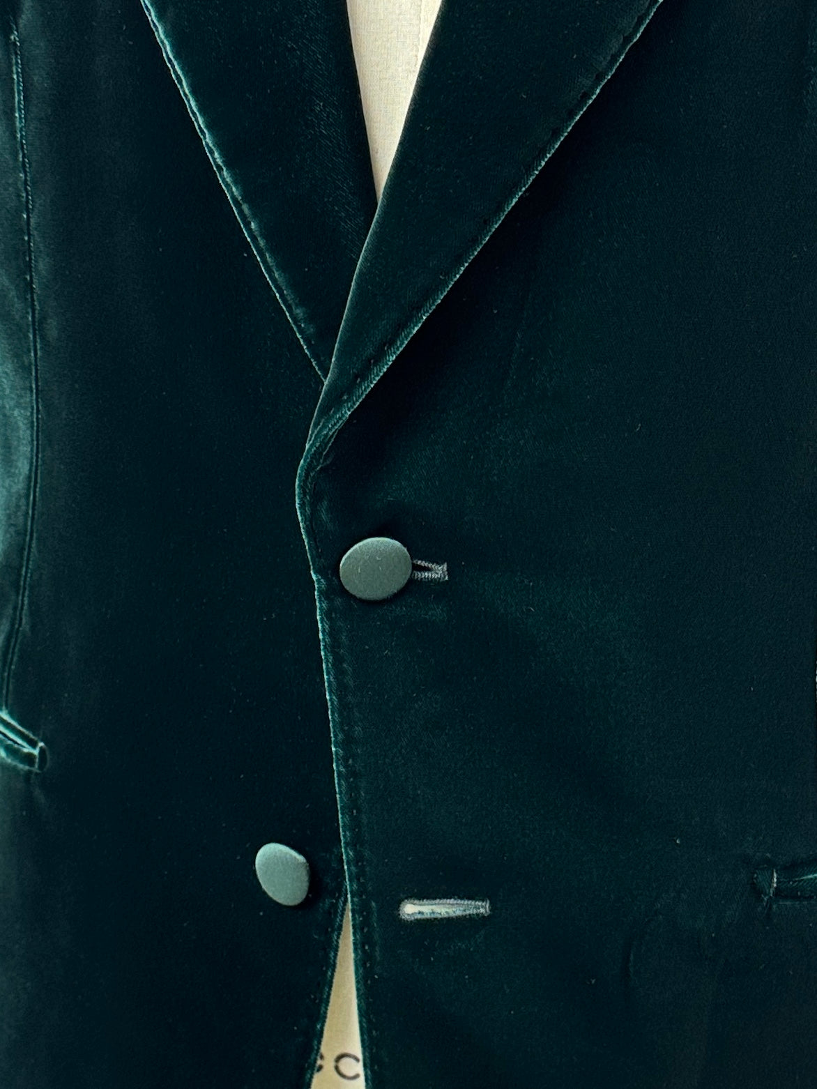 Met het maatwerk van Tom Ford bezit u het charisma van James Bond. Deze tijdloze look, gemaakt van zacht fluweel van een viscosemix, heeft scherp gewatteerde - gestrikte - schouders, brede piek-revers, lichtjes opgehangen rond de taille en 5 functionerende knoopsgaten aan het uiteinde van de mouw. Ontdek hieronder de uitgebreide kleermakersdetails.