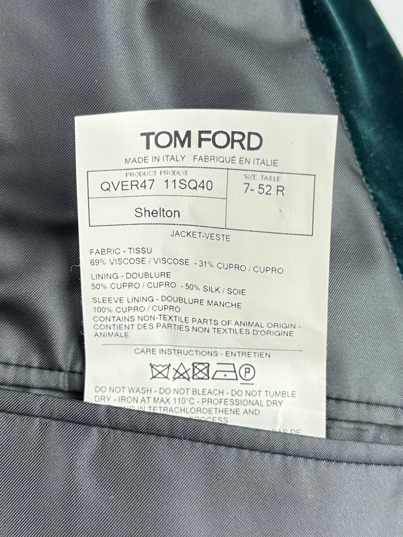 De meeste kledingstukken van Tom Ford worden vervaardigd in Italië en Zwitserland. Het maken van een Tom Ford-pak duurt acht weken – en het proces begint met de keuze van de stof. De wollen stoffen van Tom Ford worden in Engeland gesponnen op 18e-eeuwse machines, terwijl de mengsels van wol, zijde en wol en kasjmier in Noord-Italië worden gemaakt. Een kleermaker of naaister besteedt negentien uur uitzonderlijke zorg aan de duurzaamheid van het – op maat gemaakte – kledingstuk.
