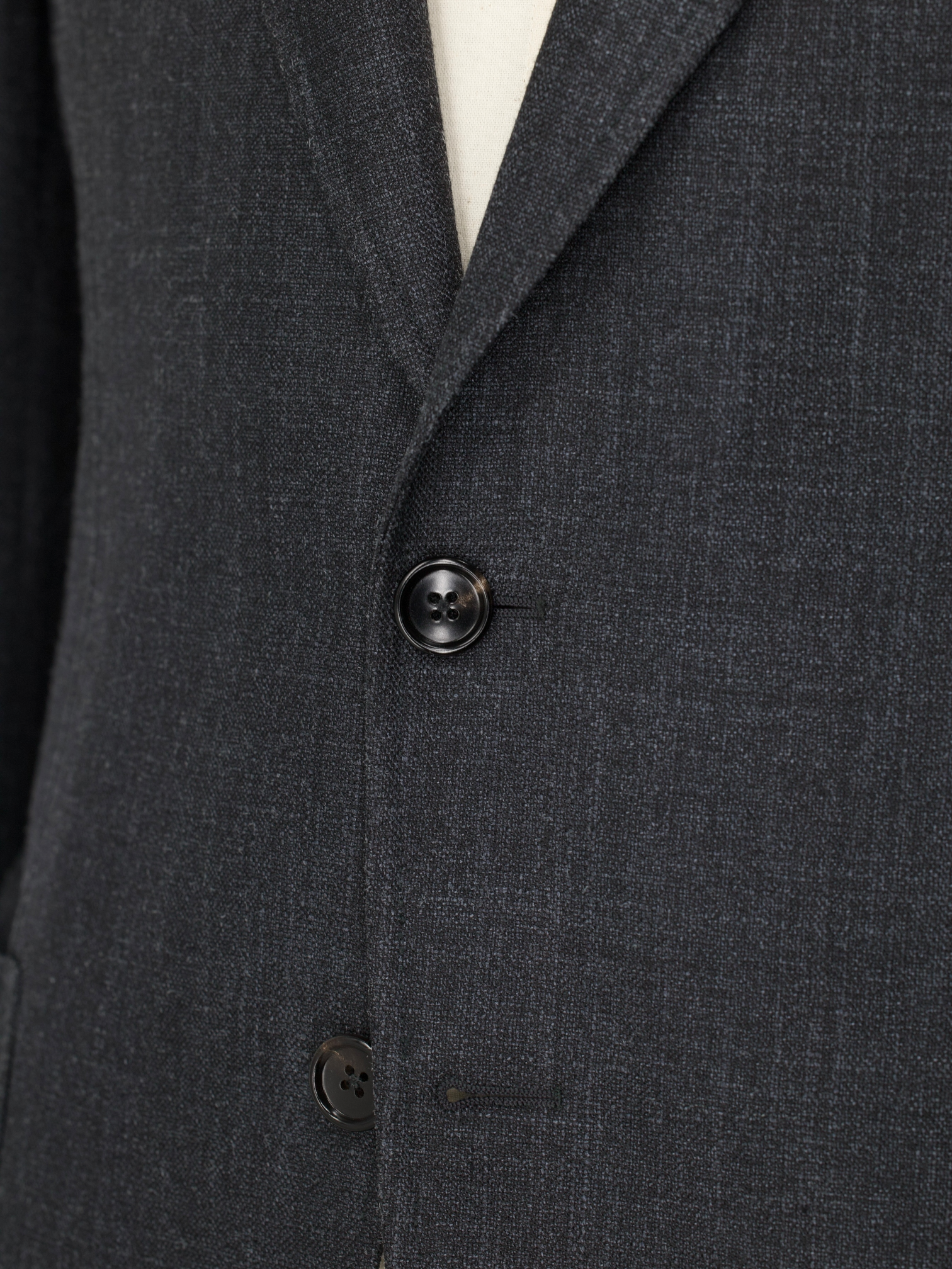 Een kleermakersjasje - of jas - heeft een tussenvoering nodig die helpt om het vorm te geven en te vormen. Canvas geeft het item een op maat gemaakte en ambachtelijke look. Kortom, het blaast leven in. Puur technisch, canvas is gemaakt van paardenhaar, wol, mohair of kamelenhaar. Het kan ook een mix van allemaal zijn, met verschillende diktes en gewichten. Het canvas wordt, vaak met de hand, aan het jasje gestikt, waardoor de stukken canvas 'zweven' in het midden van de binnen- en buitenstof. Dit geeft de jas extra flexibiliteit. Het canvas loopt van de bovenste delen helemaal door tot aan het uiteinde van de jas. Nadat je je canvaspak een tijdje hebt gedragen, begint het je vorm aan te nemen en er ongelooflijk natuurlijk uit te zien.