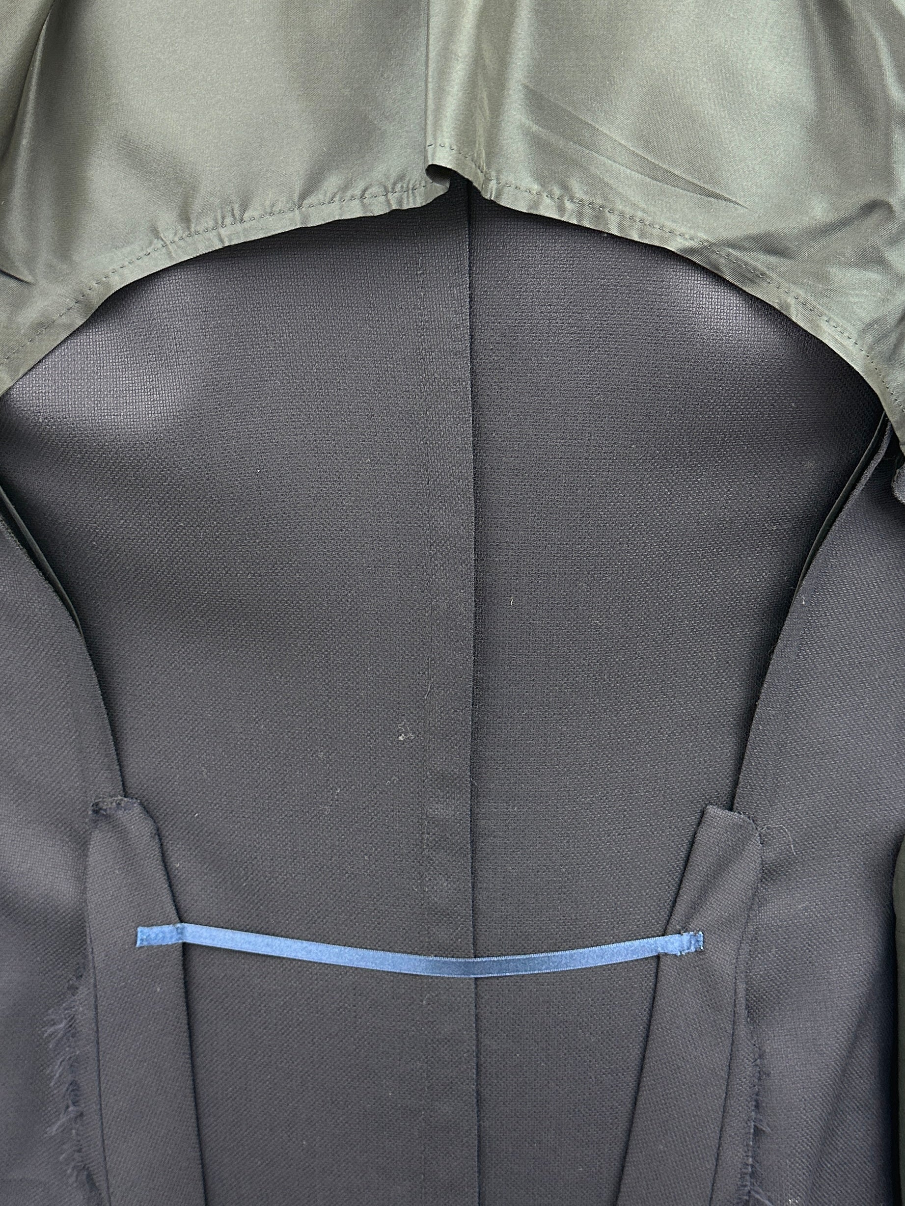 De kleermaker voegt twee figuurnaden toe - denk aan ze als ingeknepen naden - om ervoor te zorgen dat het lichaam van het jasje een slank silhouet krijgt. Het proces, genaamd "mezzo punto riprese", wordt volledig met de hand uitgevoerd.