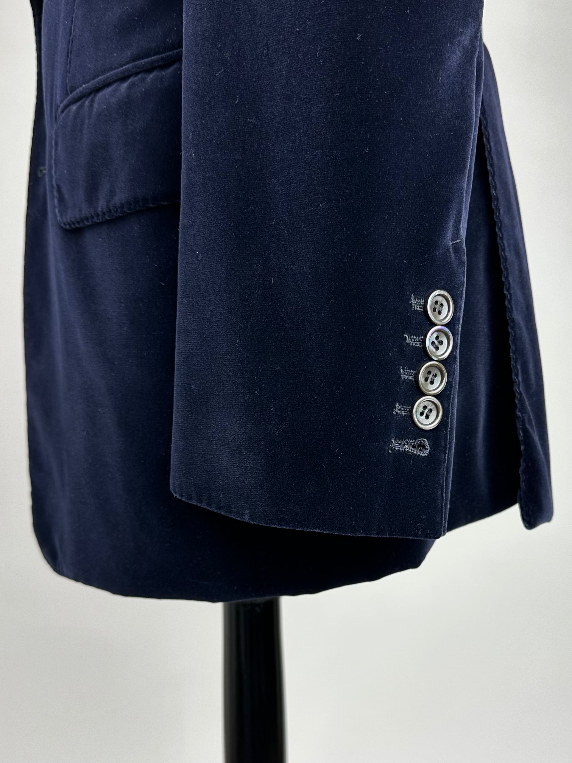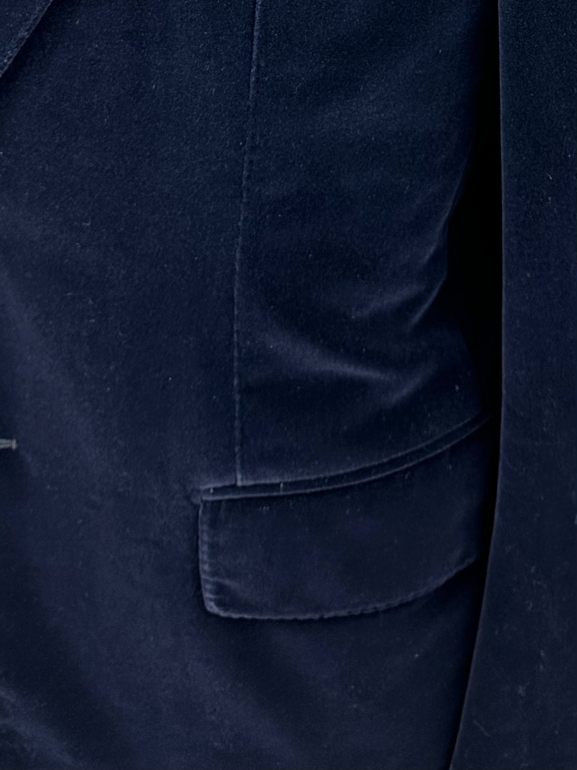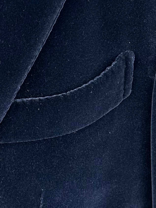 Met het maatwerk van Tom Ford bezit u het charisma van James Bond. Deze tijdloze look, gemaakt van zacht fluweel van een zijde- en katoenmix, heeft scherp gewatteerde - gestrikte - schouders, brede puntrevers, lichtjes opgehangen rond de taille en 5 functionerende knoopsgaten aan het uiteinde van de mouw. Ontdek hieronder de uitgebreide kleermakersdetails.