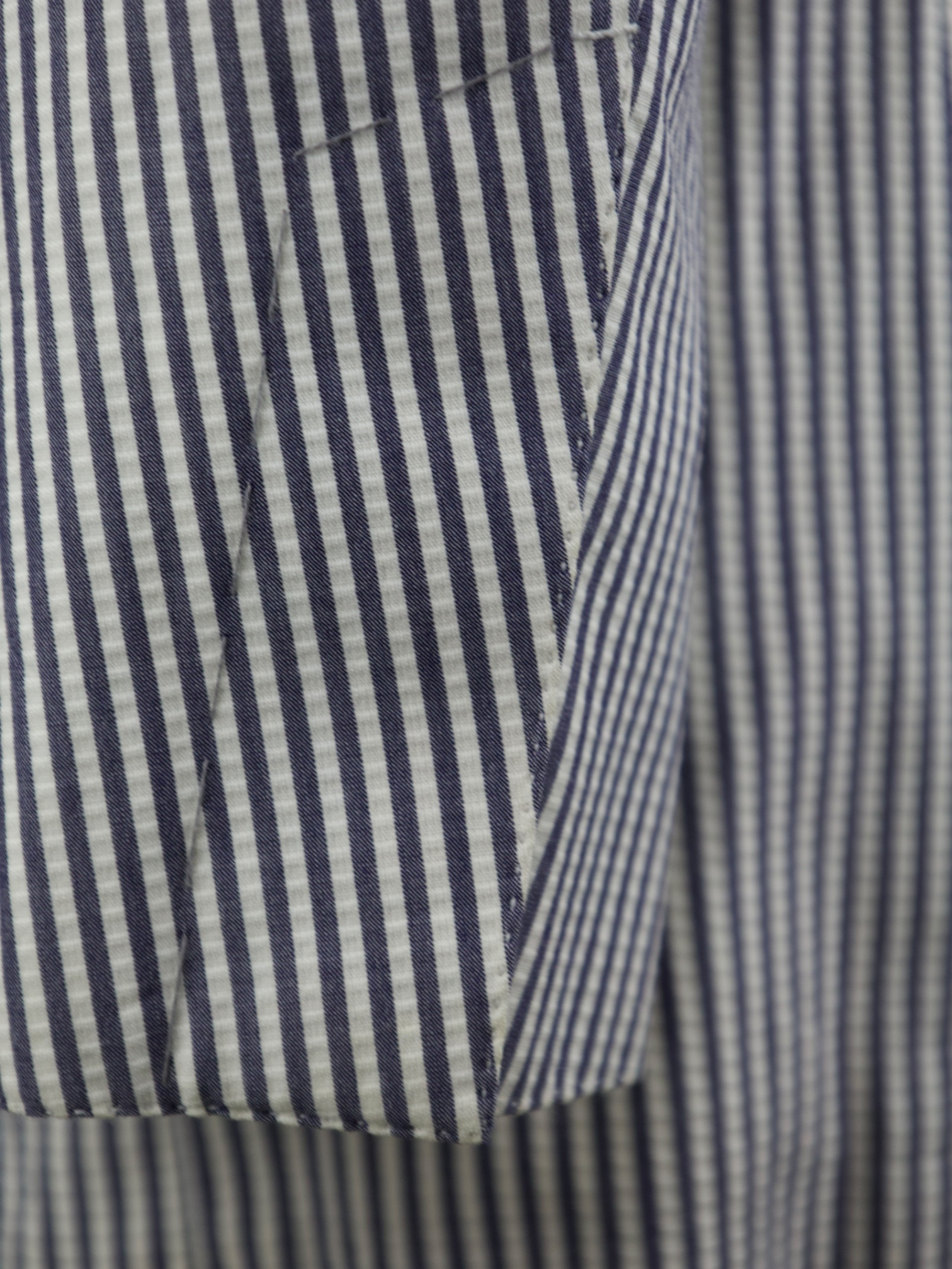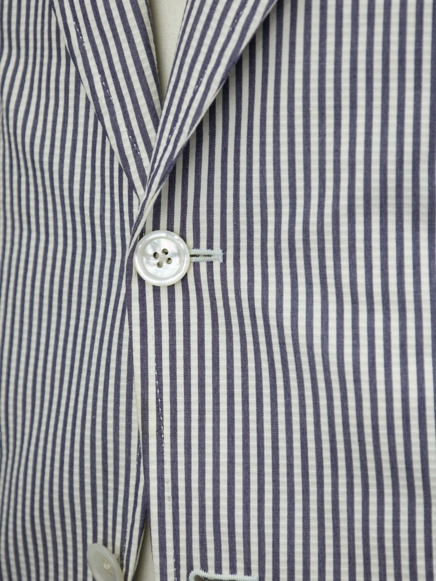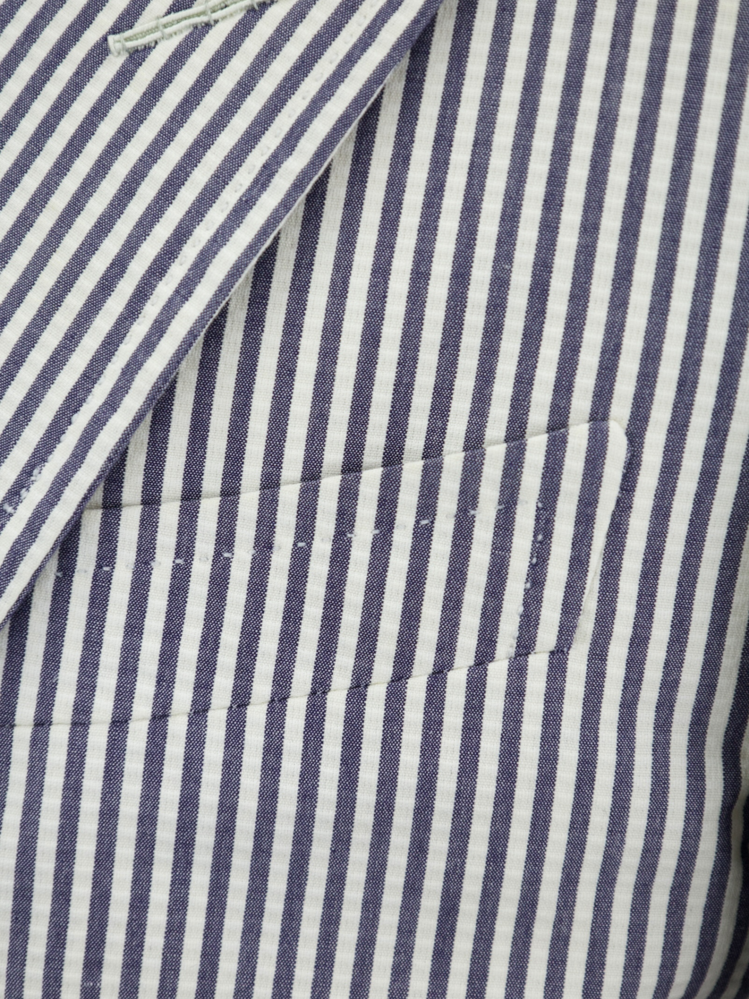 Seersucker has a storied history, originating in colonial India, where British officers favored the fabric for its cooling properties in the intense heat. The name itself comes from the Persian phrase shir o shakar ("milk and sugar"), referring to its alternating smooth and puckered texture. By the early 20th century, seersucker became a staple of American summer tailoring, embraced by Southern gentlemen and later reinterpreted in the world of contemporary menswear. Tom Ford elevates this heritage with his signature precision, ensuring the jacket’s structure and fit retain an air of power and sophistication. The hand-stitched lapels, precisely cut shoulders, and expertly tailored Spencer silhouette transform this time-honored fabric into a statement of modern elegance. Discover the elaborated sartorial details below.