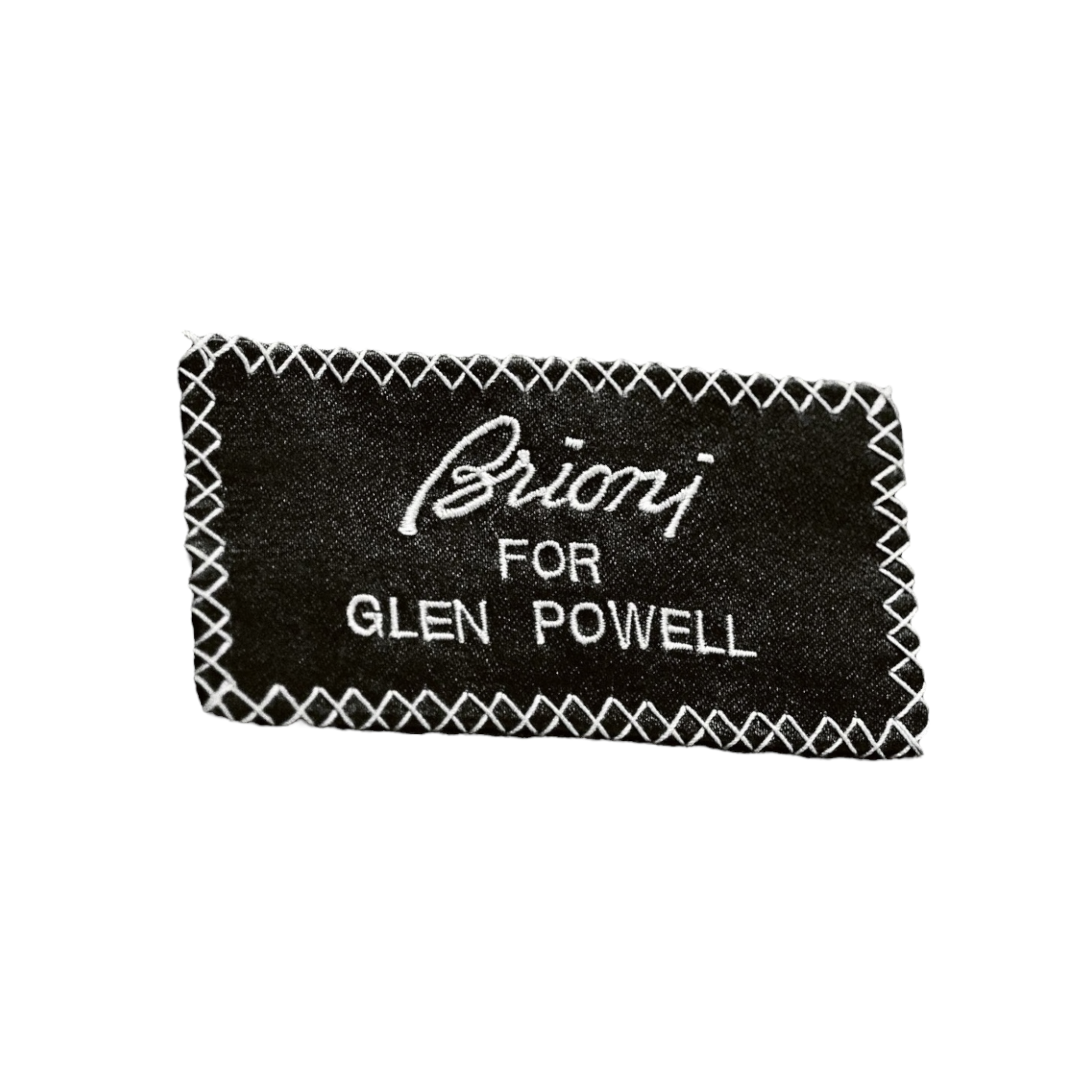 Brioni has a long history of creating custom garments for high-profile celebrities, such as Glen Powell and many others in the entertainment industry. These bespoke suits often feature unique labels with the phrase "Expressively for," followed by the celebrity's name or the commissioning store. This personalized branding underscores Brioni's dedication to exclusivity and craftsmanship, making it a preferred choice for distinguished individuals across various fields, not just in film but among global elites in general.