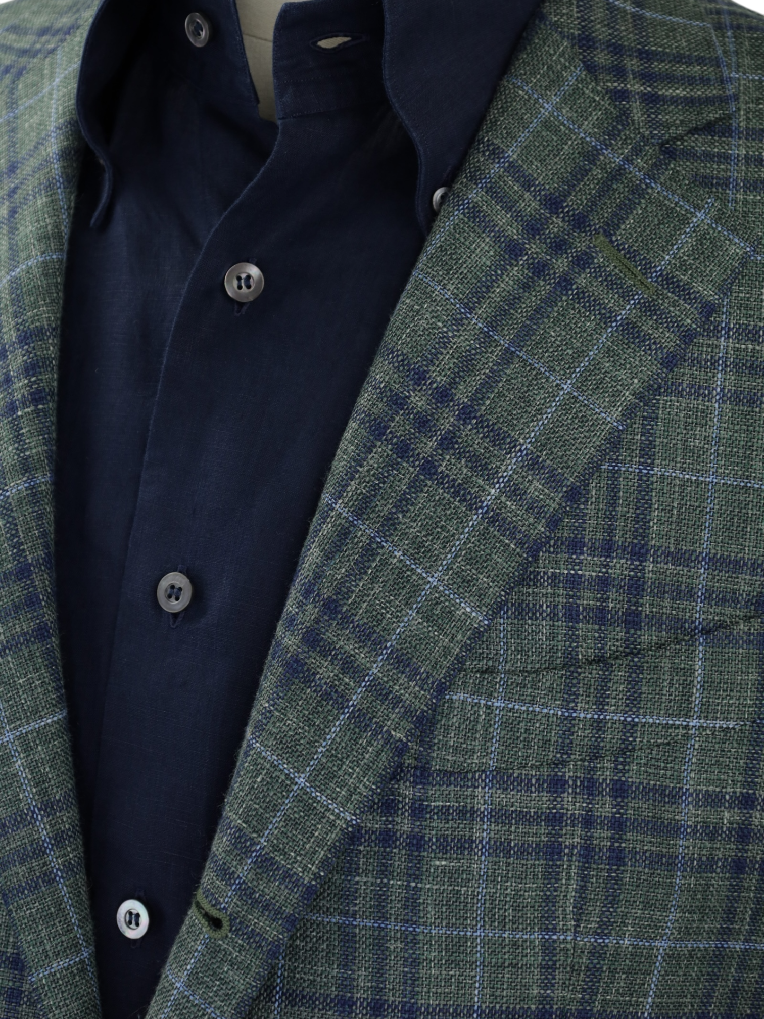 The featured blazer here is a Corneliani Sartoria, the more luxurious line from Corneliani. It’s crafted from a wool, silk, and linen blend by Loro Piana, which offers a combination of structure, softness, and breathability. Each material brings unique benefits to the piece: