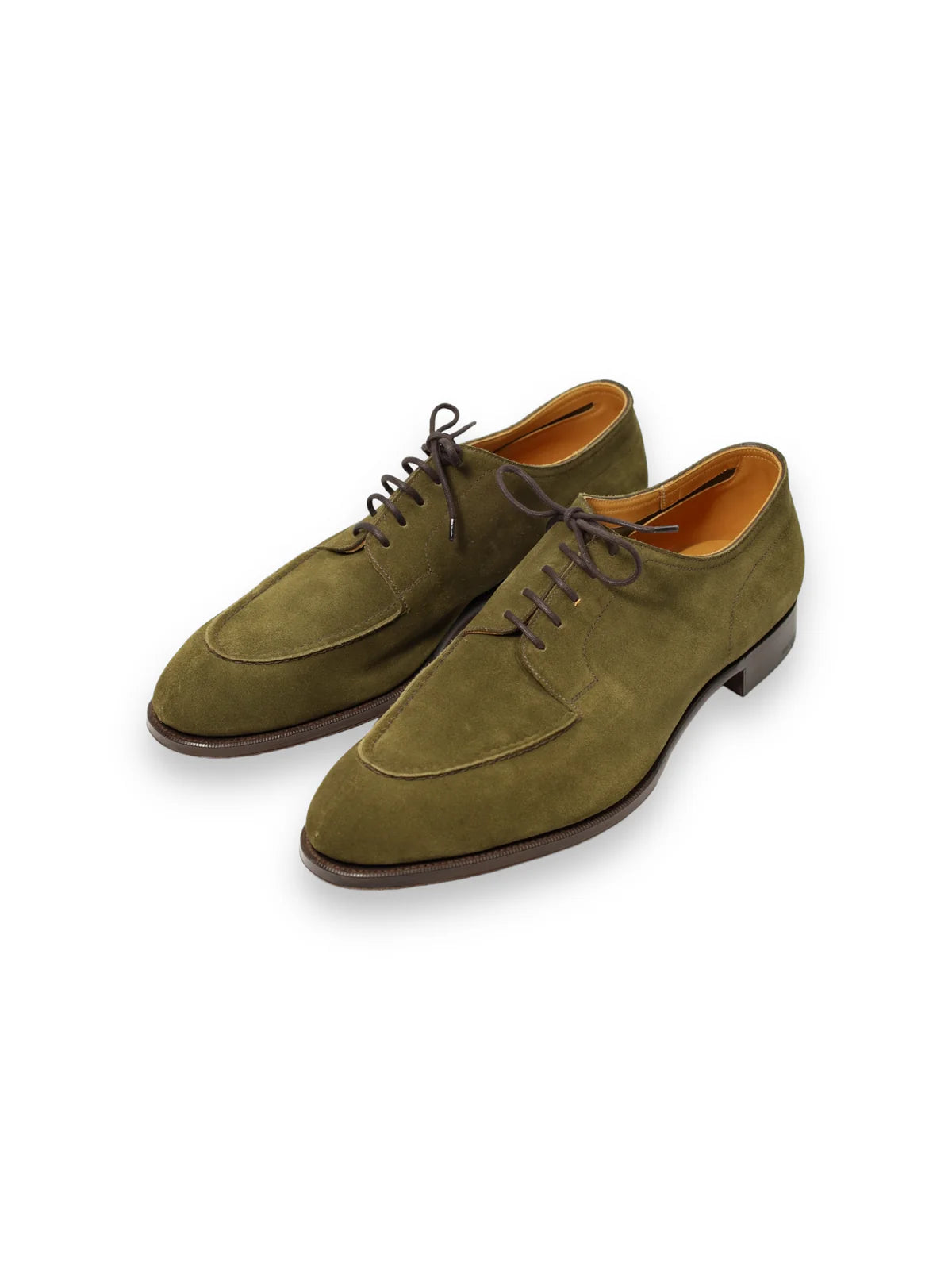 I added heavy cotton twill trousers for durability and structure, and Edward Green Dover suede shoes in a muted olive tone to tie everything together. The texture of the suede complements the blazer's silk and linen blend, creating depth and a smart yet approachable aesthetic.