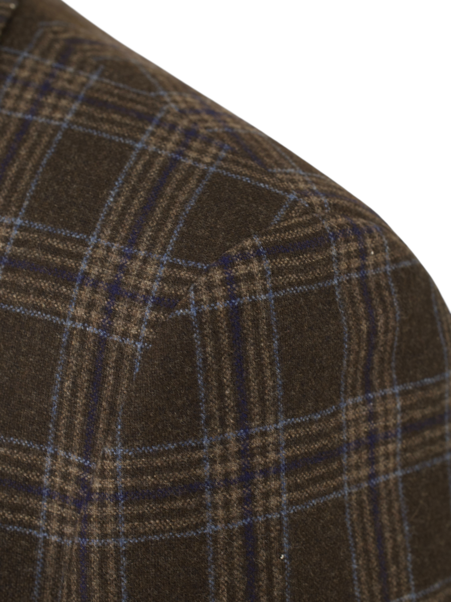 Belvest Dark Brown & Blue Wool Flannel Tartan-Check Jacket