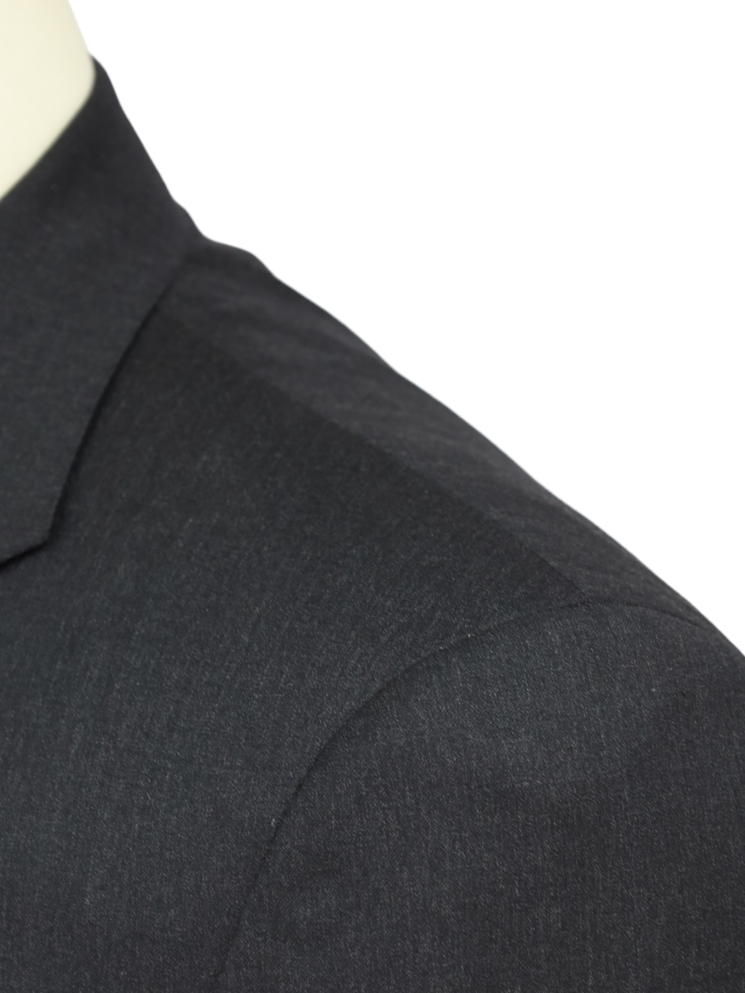 Introducing the Brioni Anthracite Super 150's Parlamento Jacket, a masterpiece of tailoring that embodies the highest standards of luxury and craftsmanship. This jacket is meticulously crafted from Super 150's wool, renowned for its softness and durability, in a rich anthracite shade that exudes sophistication.