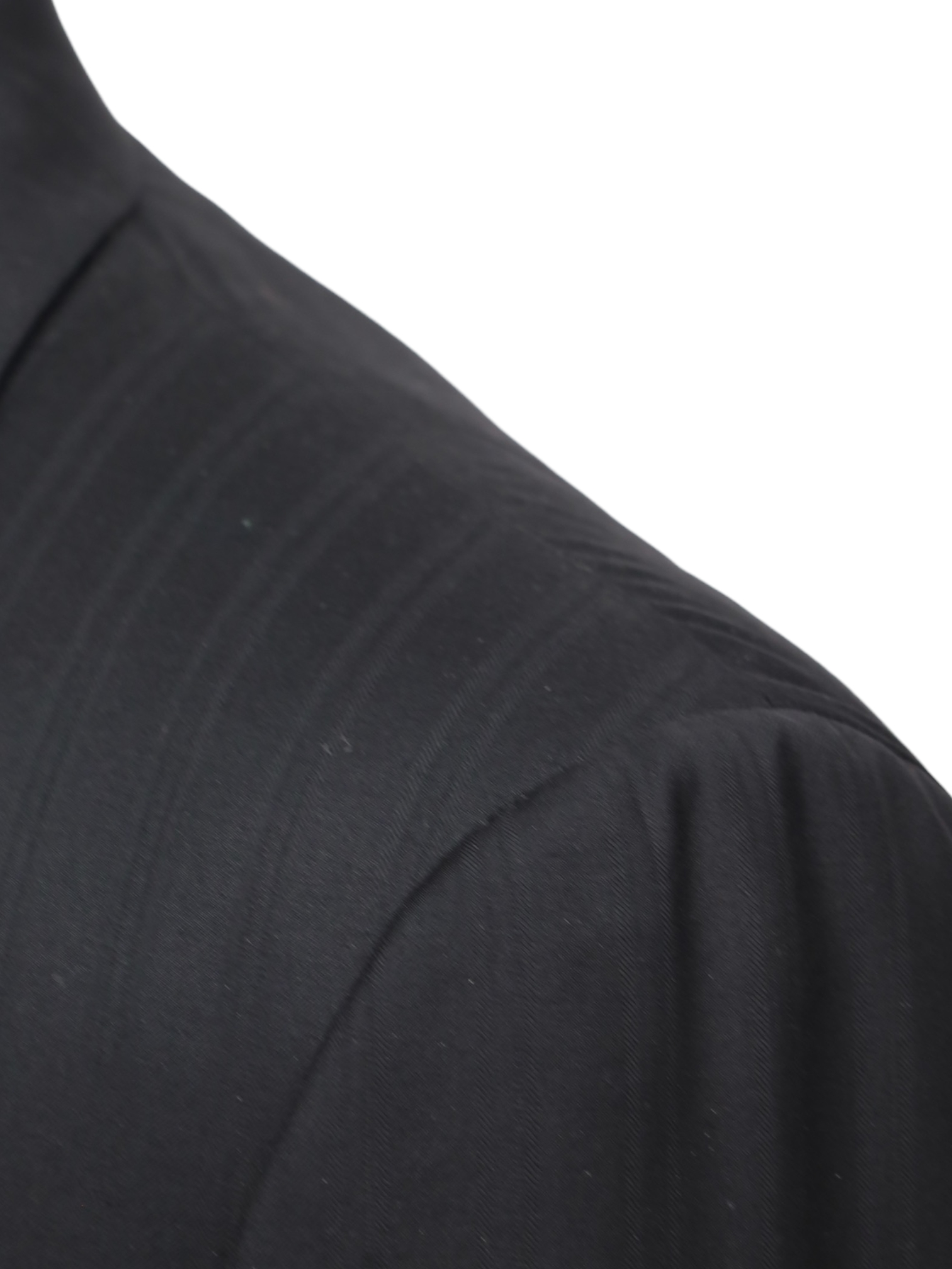 Featuring a subtle shadow stripe pattern, this suit offers a contemporary twist on classic black, making it an ideal choice for business events and formal occasions. The suit’s construction highlights Brioni's dedication to creating garments that not only look exceptional but also offer superior comfort and performance. Discover the elaborated sartorial details below.
