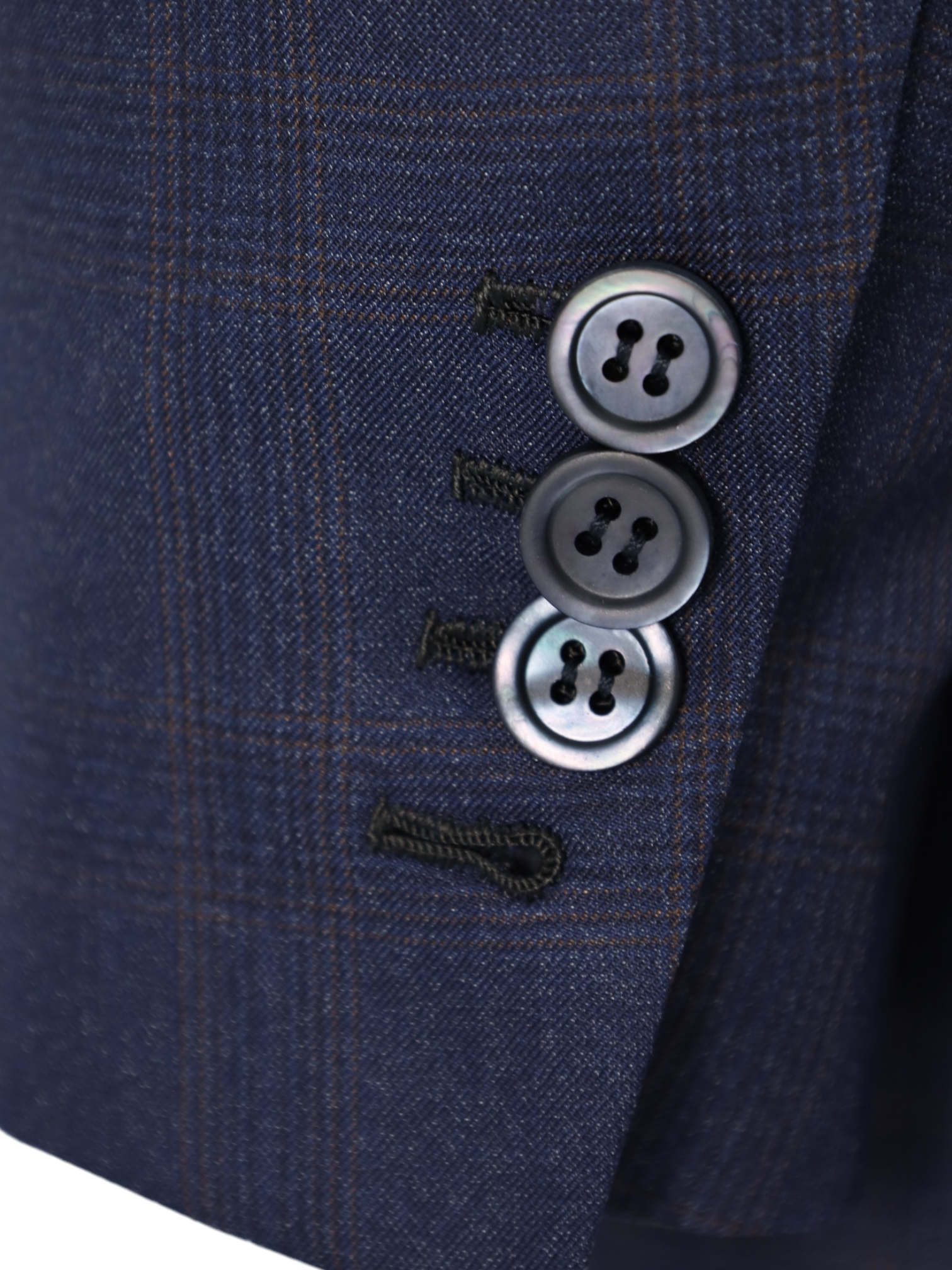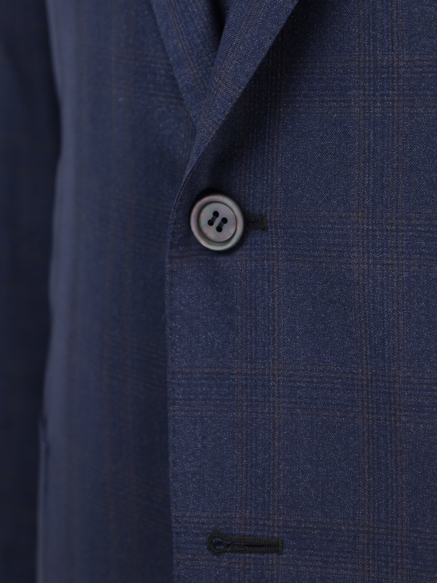 Balancing traditional elegance with a contemporary touch, the Brioni Blue and Brown 3-Piece Wool & Silk Glenplaid Suit is a distinguished addition to any gentleman's wardrobe. Discover the elaborated sartorial details below.