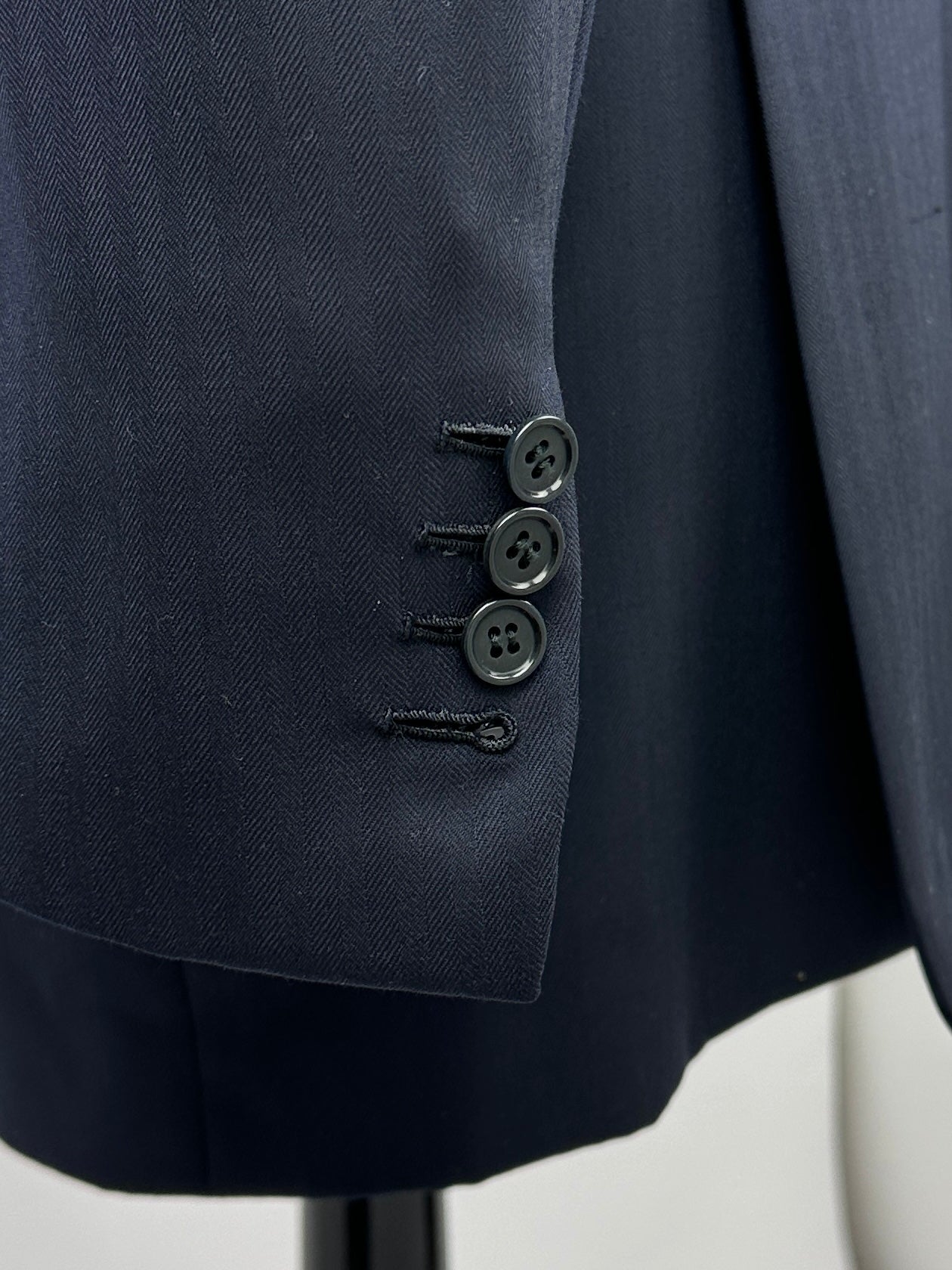 The tailors adds two darts - think of them as pinched seams - to ensure the jacket’s body achieves a slim silhouette. The process, called mezzo punto riprese, is done entirely by hand.