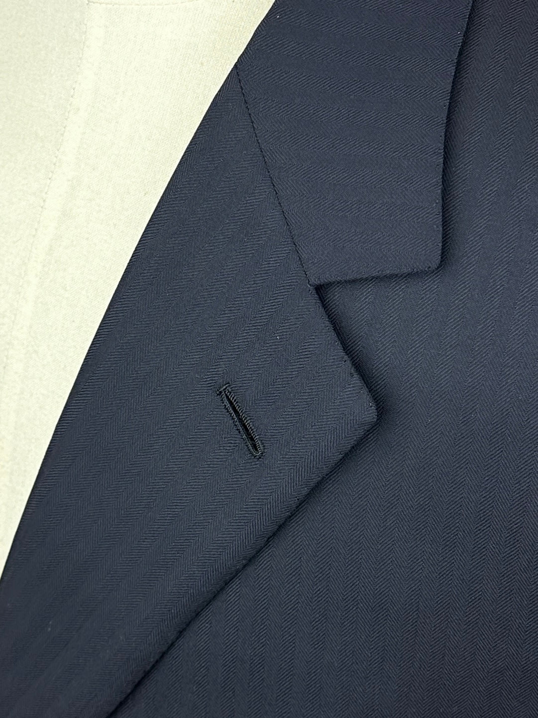 Also known as ‘barchetta’ Italian for ‘little boat’, it is so named because this pocket floats on the chest gently angled upward, just like the bow of a sailboat. These pockets echo the lively roll of a lapel that carries the spring of canvas and natural wool, unlike machine-made chest pockets that have a more stamped-out, rectangular shape and less life.