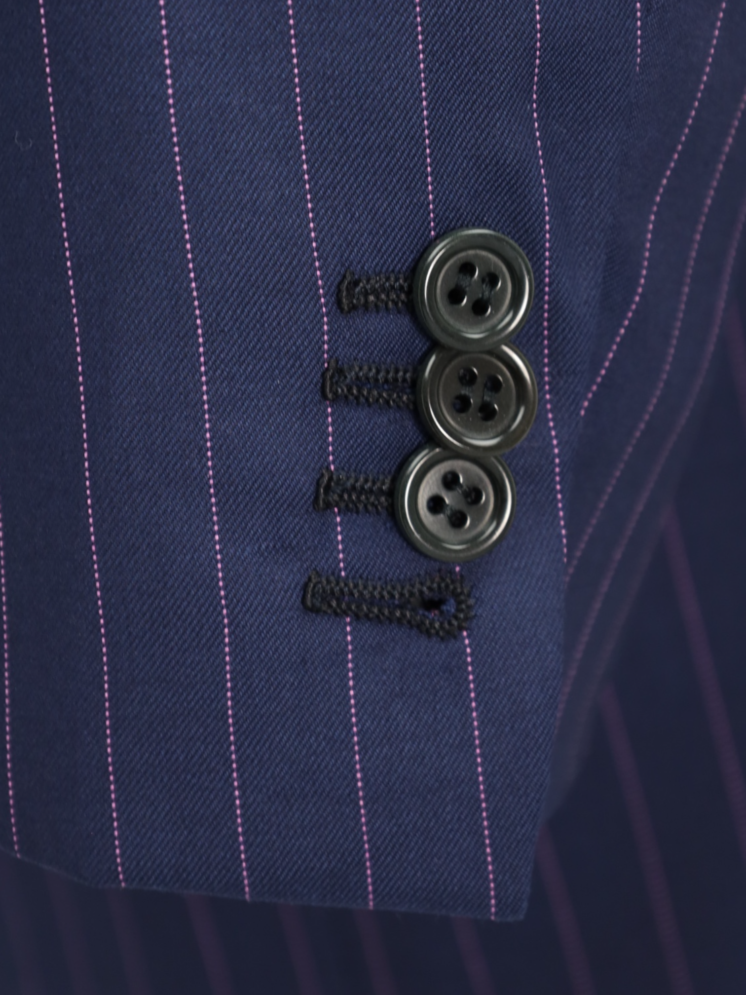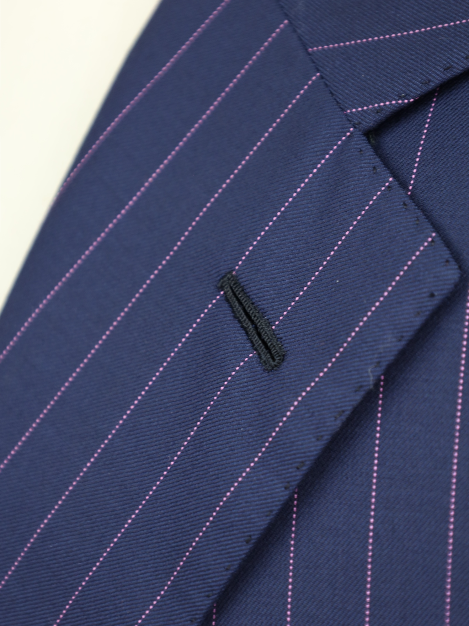 Handmade buttonholes are made using a chain of knotted loops called purl stitches that make them strong and visually distinctive. It takes about five seconds to sew a regular buttonhole with a machine – a single handmade buttonhole takes about 10 minutes to sew.