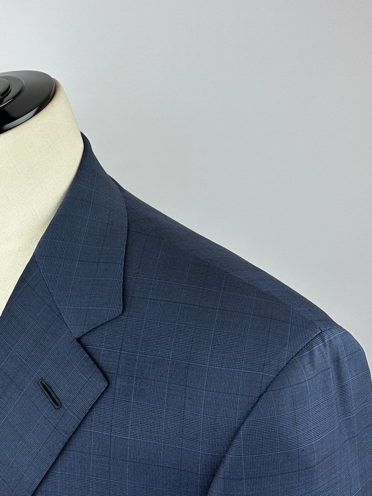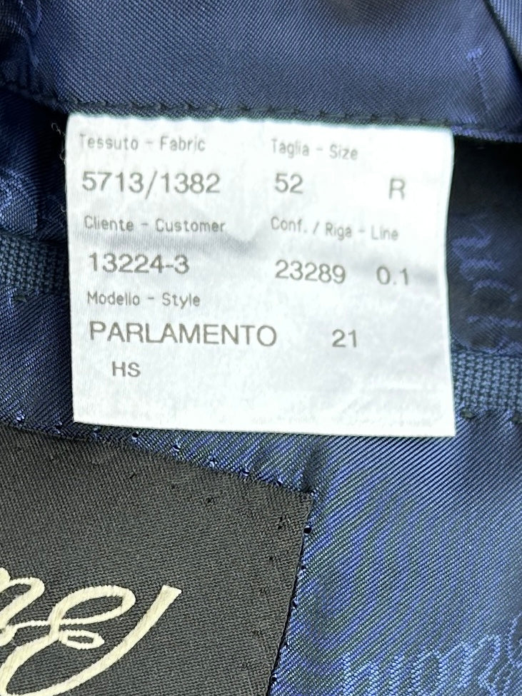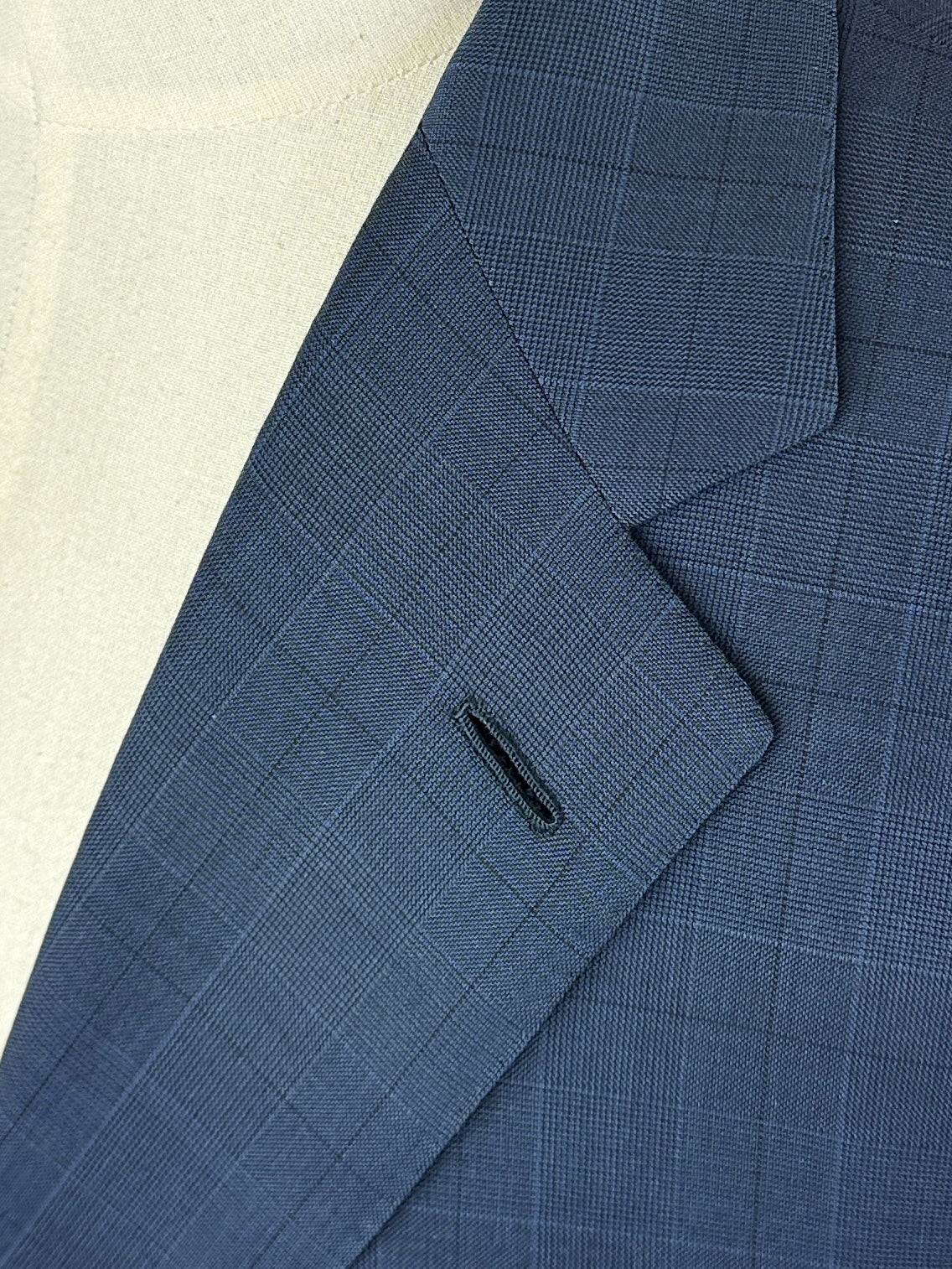 Blue handmade Brioni suit. notch lapels, fully lined, expertly constructed from luxury Super 180's wool with double side vents at the back and 2.5-button closure. The notch lapels and welted chest pocket are undeniably classic. Discover the elaborated sartorial details below.