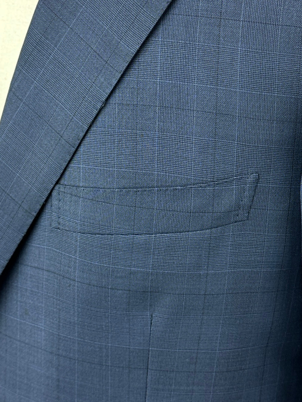 Also known as ‘barchetta’ Italian for ‘little boat’, it is so named because this pocket floats on the chest gently angled upward, just like the bow of a sailboat. These pockets echo the lively roll of a lapel that carries the spring of canvas and natural wool, unlike machine-made chest pockets that have a more stamped-out, rectangular shape and less life.