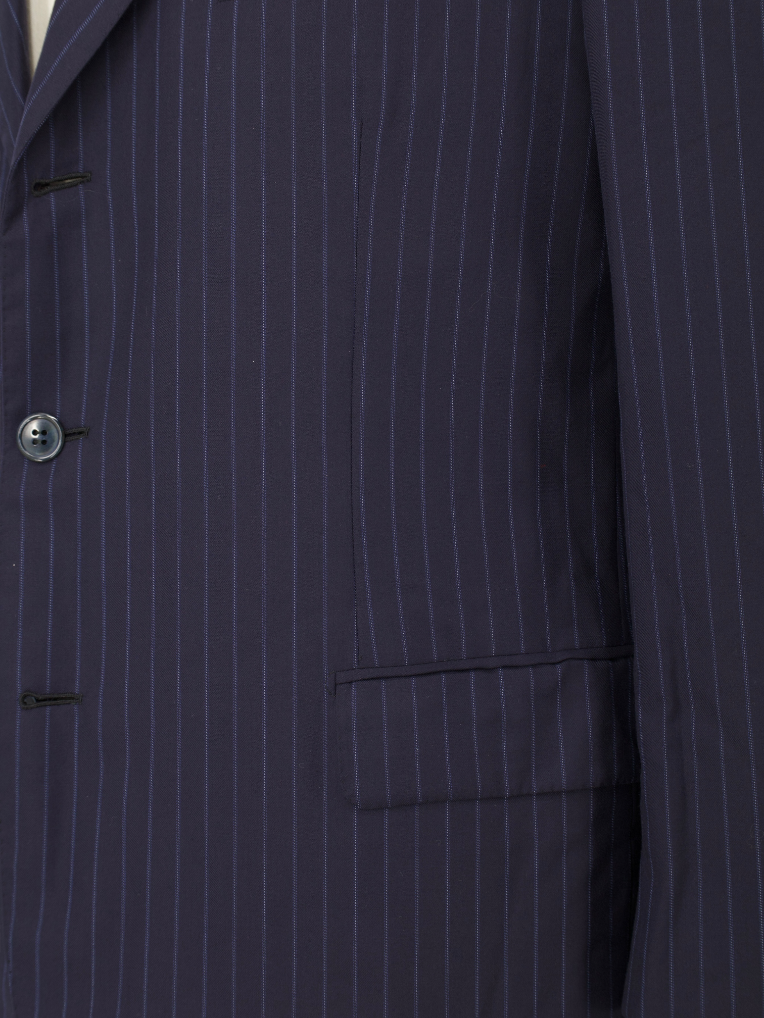 Also known as ‘barchetta’ Italian for ‘little boat’, it is so named because this pocket floats on the chest gently angled upward, just like the bow of a sailboat. These pockets echo the lively roll of a lapel that carries the spring of canvas and natural wool, unlike machine-made chest pockets that have a more stamped-out, rectangular shape and less life.