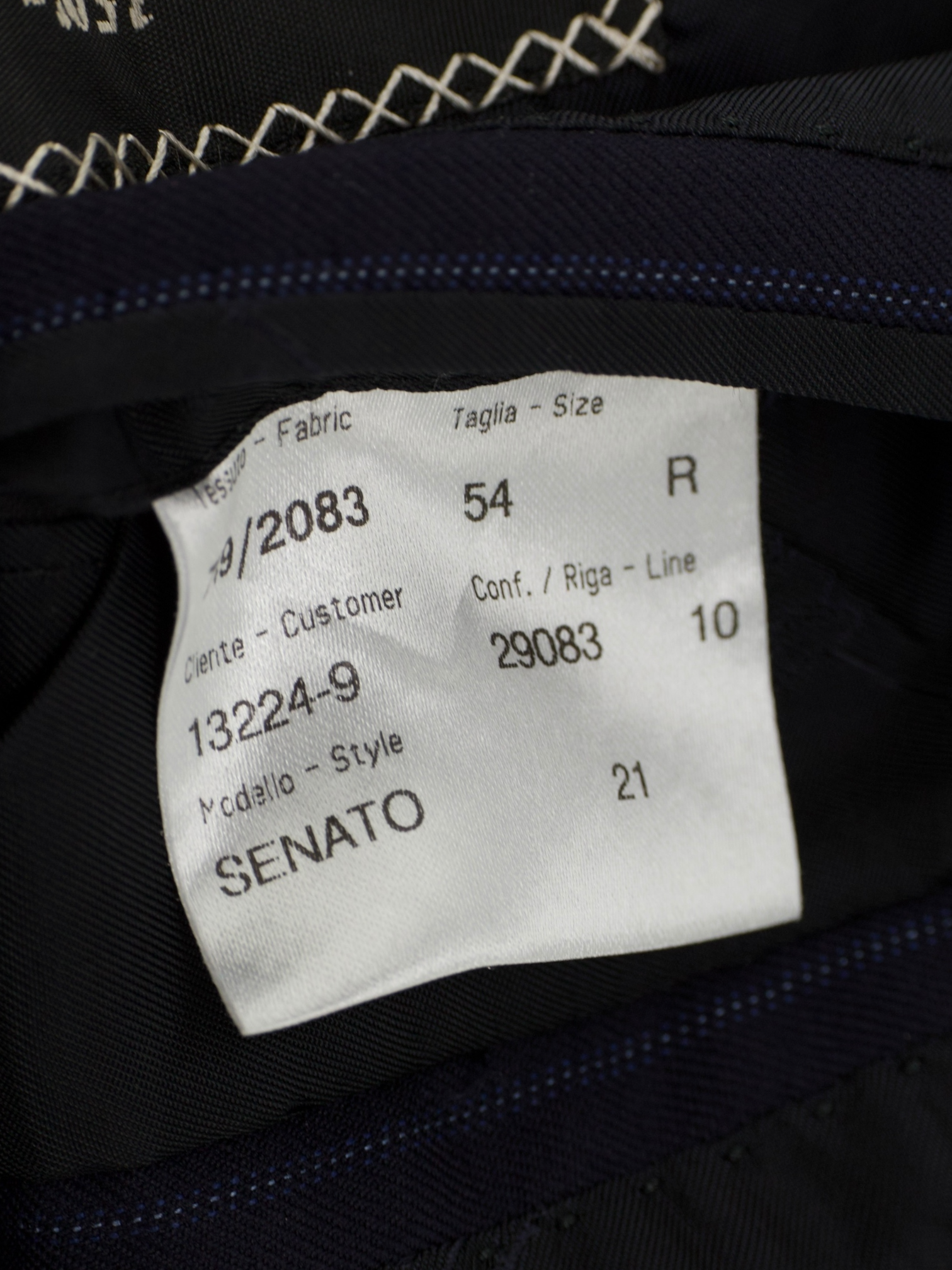 The Senato fit offers a balanced profile with soft shaping through the waist and a streamlined chest, designed for movement and quiet refinement. The trousers follow a classic line with a flat front, belt loops, and a plain hem, maintaining a tailored yet comfortable silhouette that transitions effortlessly from boardroom to formal occasions. For those who appreciate precision, craftsmanship and understated authority, this is a suit that delivers on every level. Discover the elaborated sartorial details below.