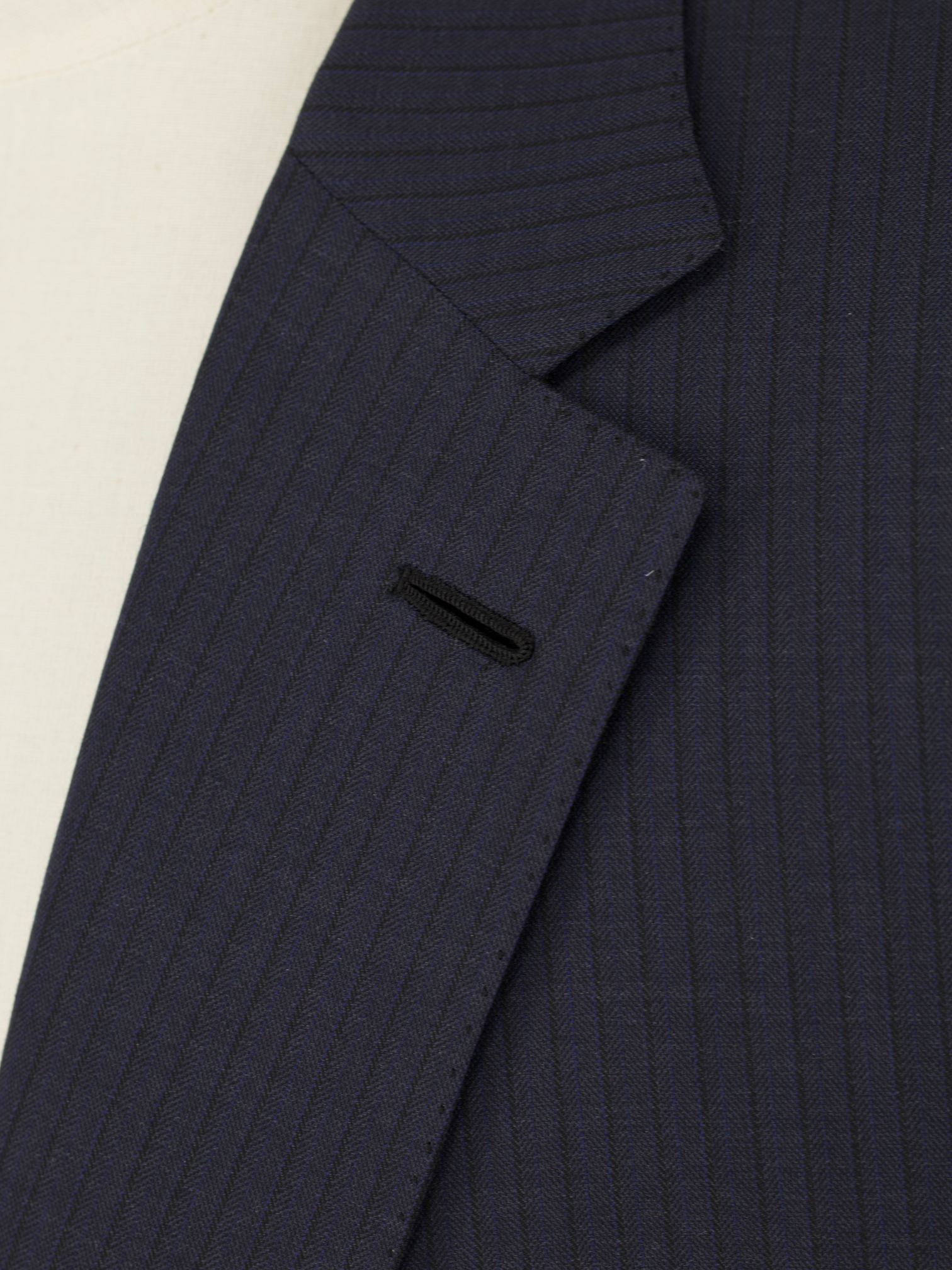Handmade buttonholes are made using a chain of knotted loops called purl stitches that make them strong and visually distinctive. It takes about five seconds to sew a regular buttonhole with a machine – a single handmade buttonhole takes about 10 minutes to sew.