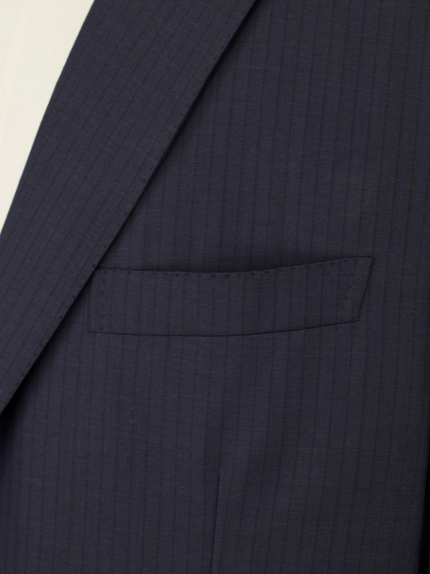 Also known as ‘barchetta’ Italian for ‘little boat’, it is so named because this pocket floats on the chest gently angled upward, just like the bow of a sailboat. These pockets echo the lively roll of a lapel that carries the spring of canvas and natural wool, unlike machine-made chest pockets that have a more stamped-out, rectangular shape and less life.