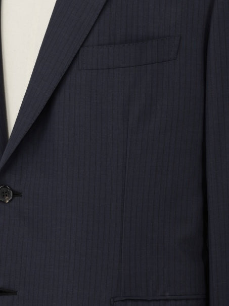 Discover the commanding elegance of this Brioni Brunico suit, tailored from dark blue Super 200’s wool with a refined pinstripe. The jacket features notch lapels, flap pockets, and double side vents, while the fully lined interior ensures both comfort and structure. The Brunico fit offers a balanced silhouette, refined in proportion and cut to project presence without being overly sharp, making it a versatile choice for both formal business and ceremonial occasions.