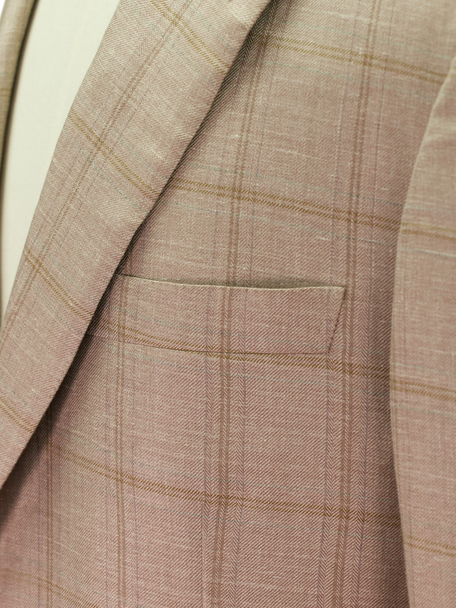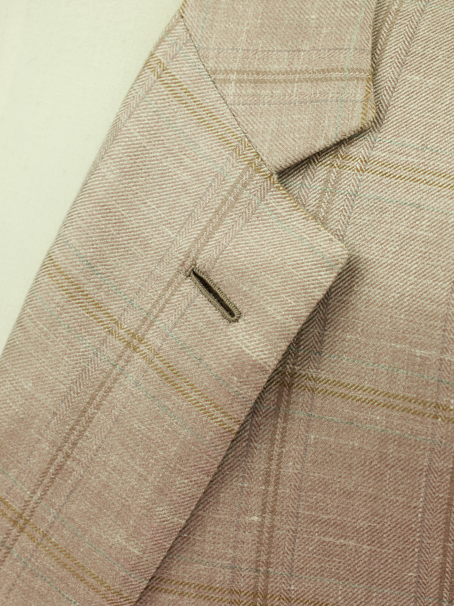 Brioni Dusty Rose Cashmere, Silk & Linen Windowpane "Chigi" Jacket