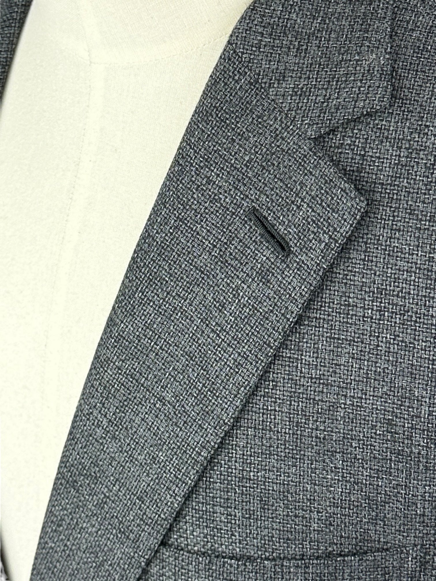 Also known as ‘barchetta’ Italian for ‘little boat’, it is so named because this pocket floats on the chest gently angled upward, just like the bow of a sailboat. These pockets echo the lively roll of a lapel that carries the spring of canvas and natural wool, unlike machine-made chest pockets that have a more stamped-out, rectangular shape and less life.