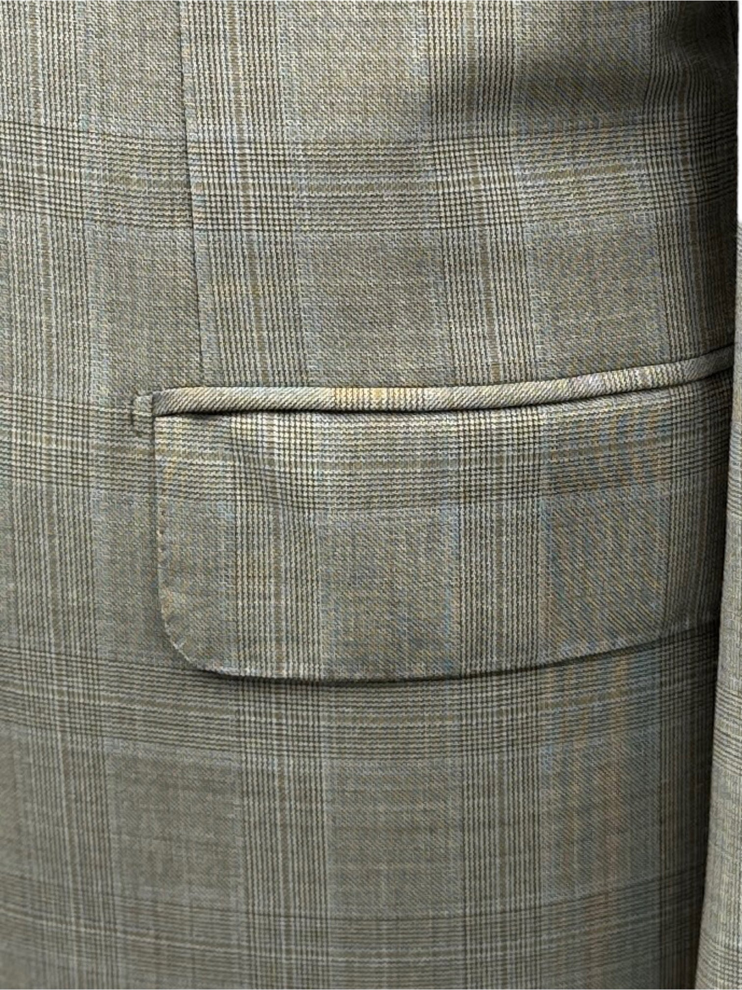 Also known as ‘barchetta’ Italian for ‘little boat’, it is so named because this pocket floats on the chest gently angled upward, just like the bow of a sailboat. These pockets echo the lively roll of a lapel that carries the spring of canvas and natural wool, unlike machine-made chest pockets that have a more stamped-out, rectangular shape and less life.